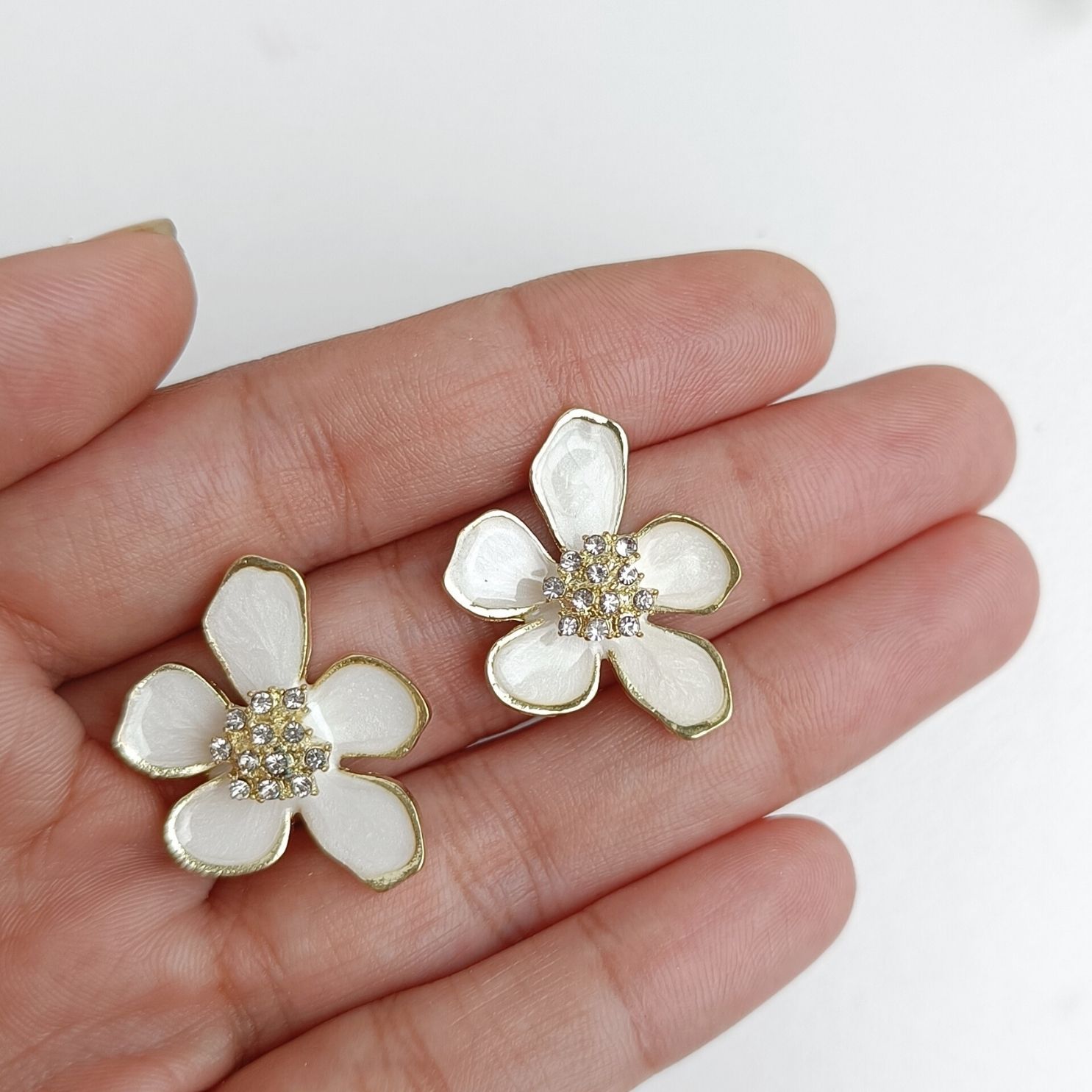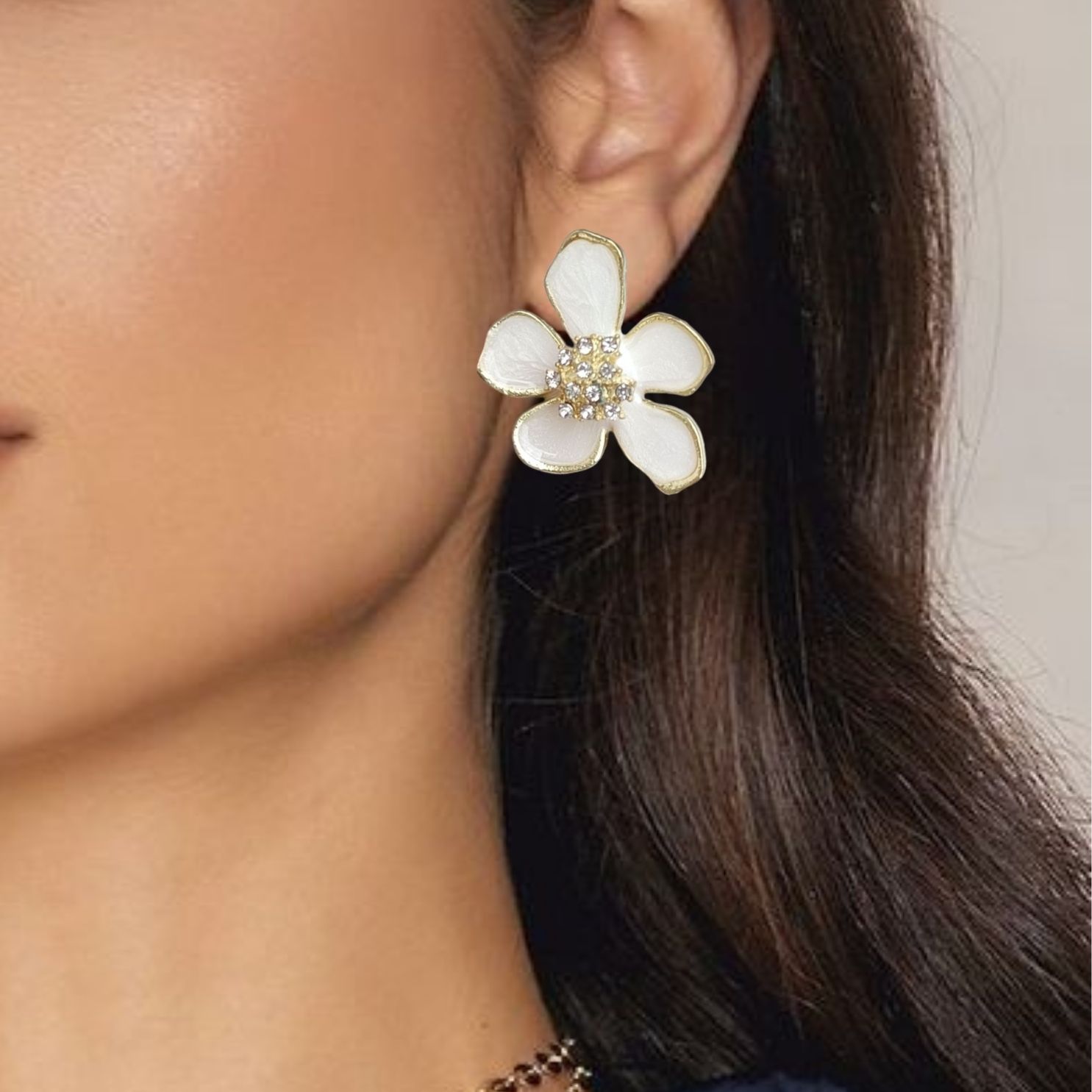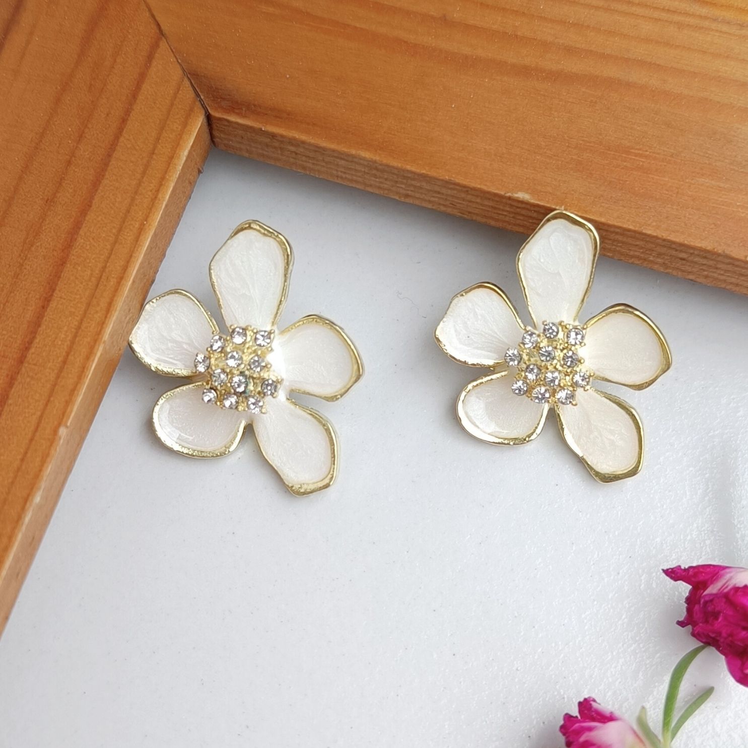 Enhance your style with these exquisite FHF Gold Plated Designer Floral Stud Earrings. Elevate your look with these elegant and captivating statement pieces.