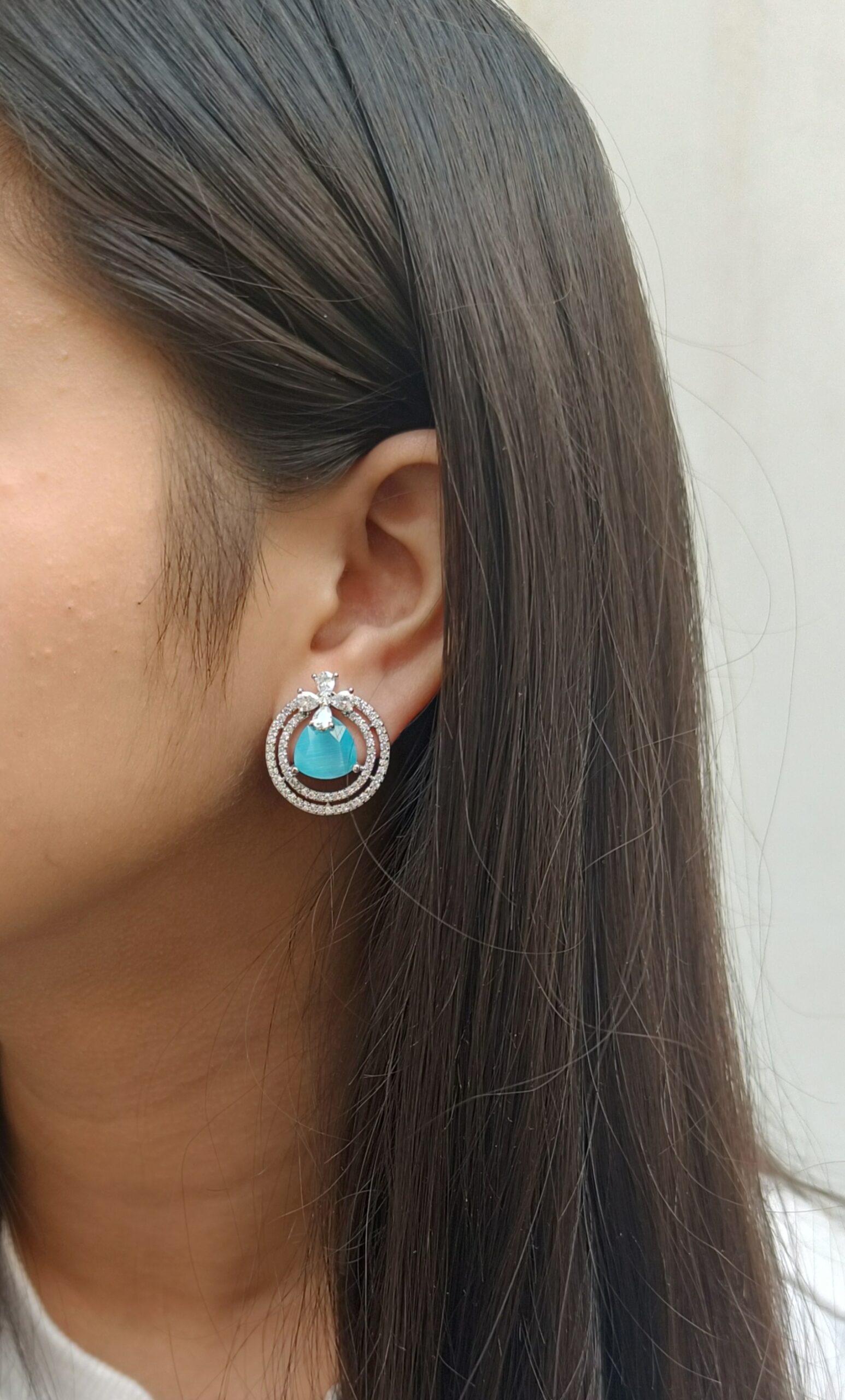 Be the first to review “FHF Rhodium Silver Plated American Diamond Sky Blue Stone Stud Earrings”