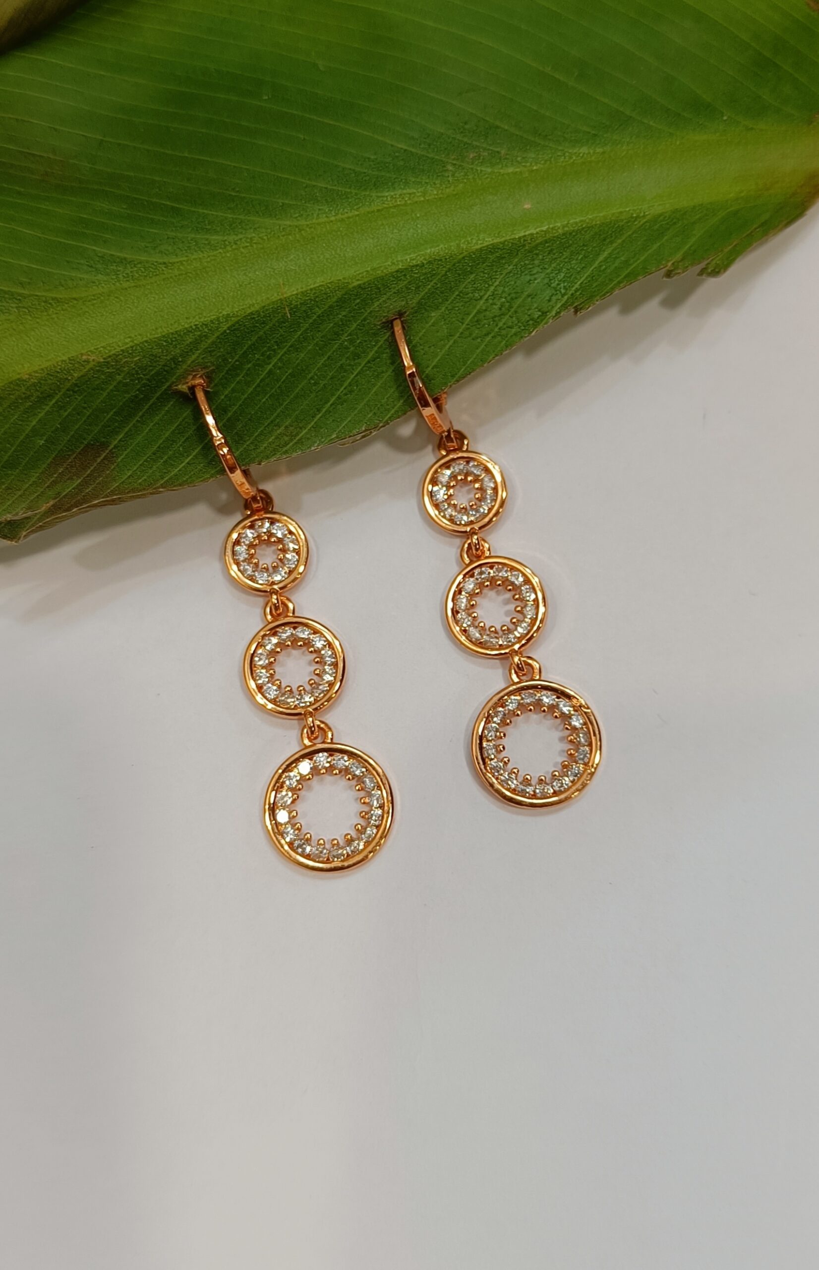 FHF Rose Gold Plated American Diamond Layered Circular Earrings which gives elegant look. Bring your style to a whole new level with this handcrafted piece of jewellery.