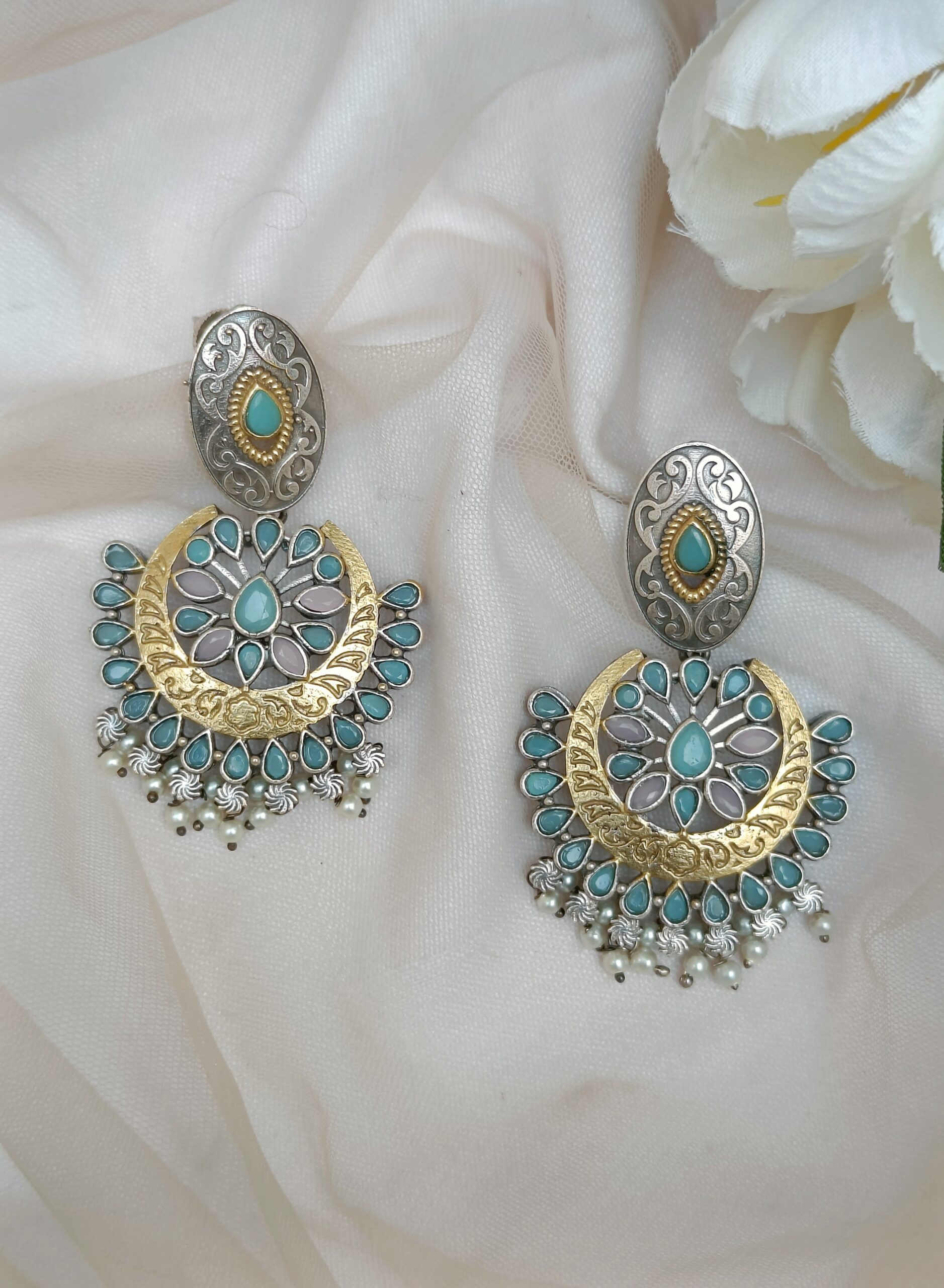 Enhance your style with these exquisite FHF Silver Plated Designer Chandbali Beaded Earrings . Elevate your look with these elegant and captivating statement pieces.