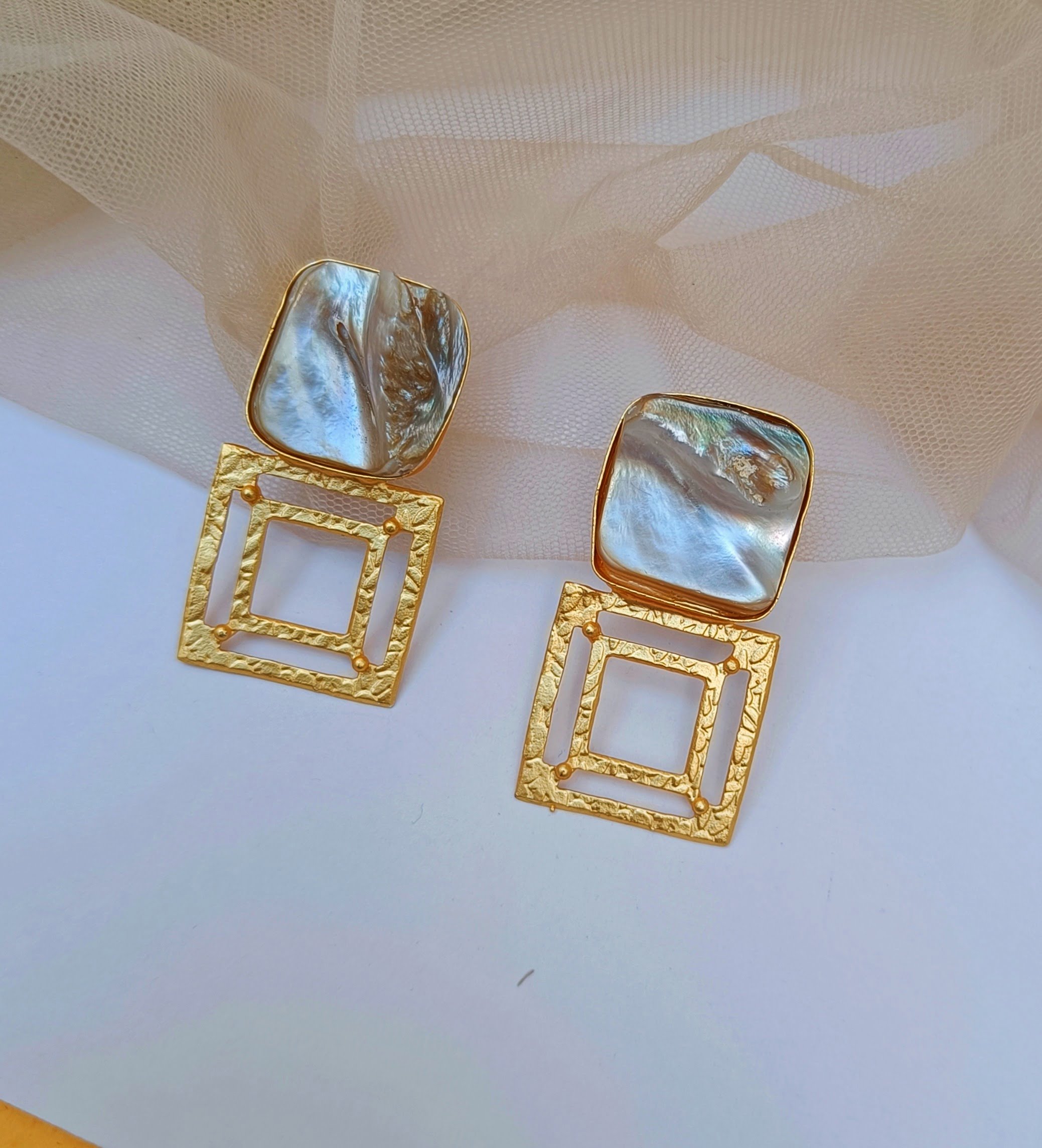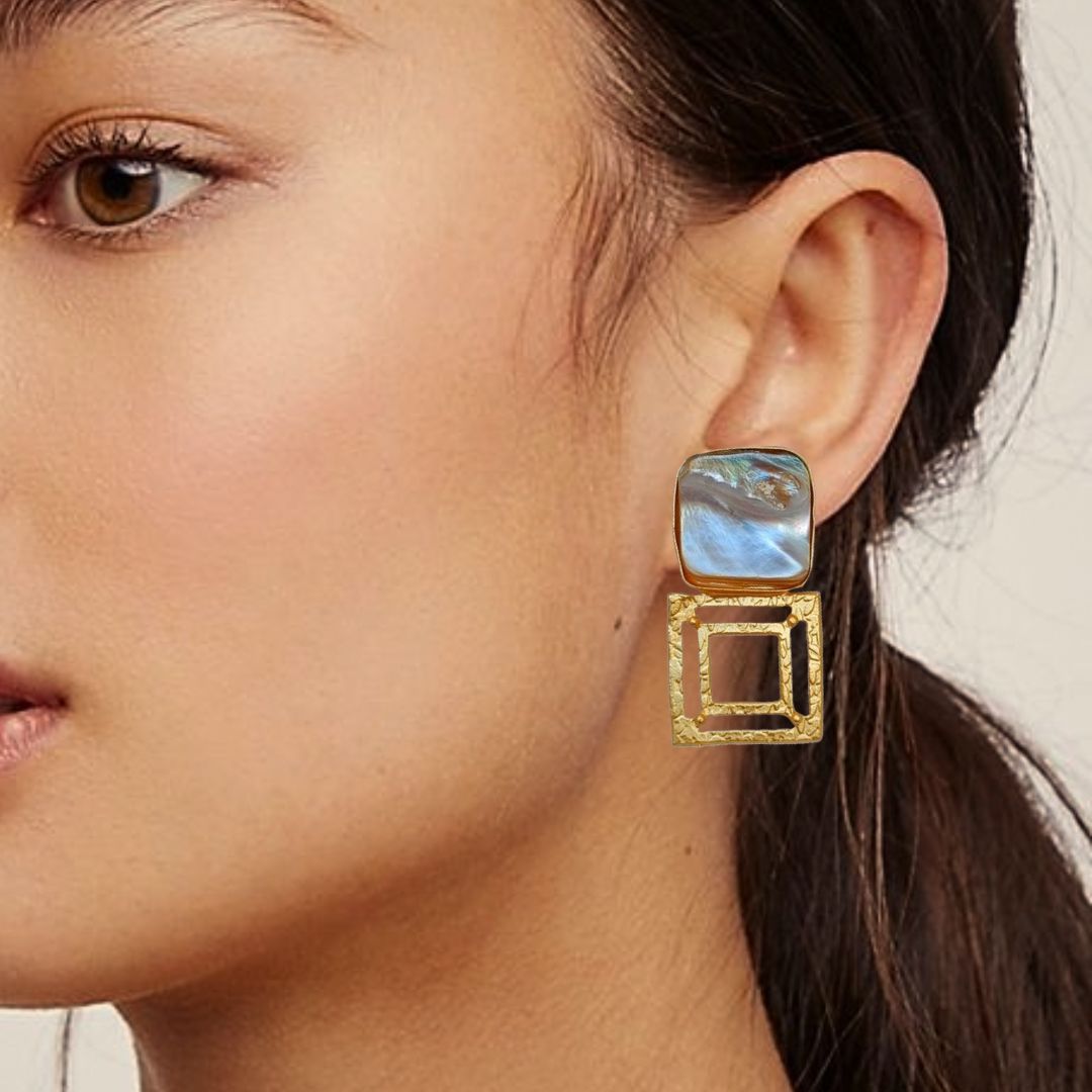 Enhance your style with these exquisite Gold Plated Baroque Stone Designer Earrings . Elevate your look with these elegant and captivating statement pieces.