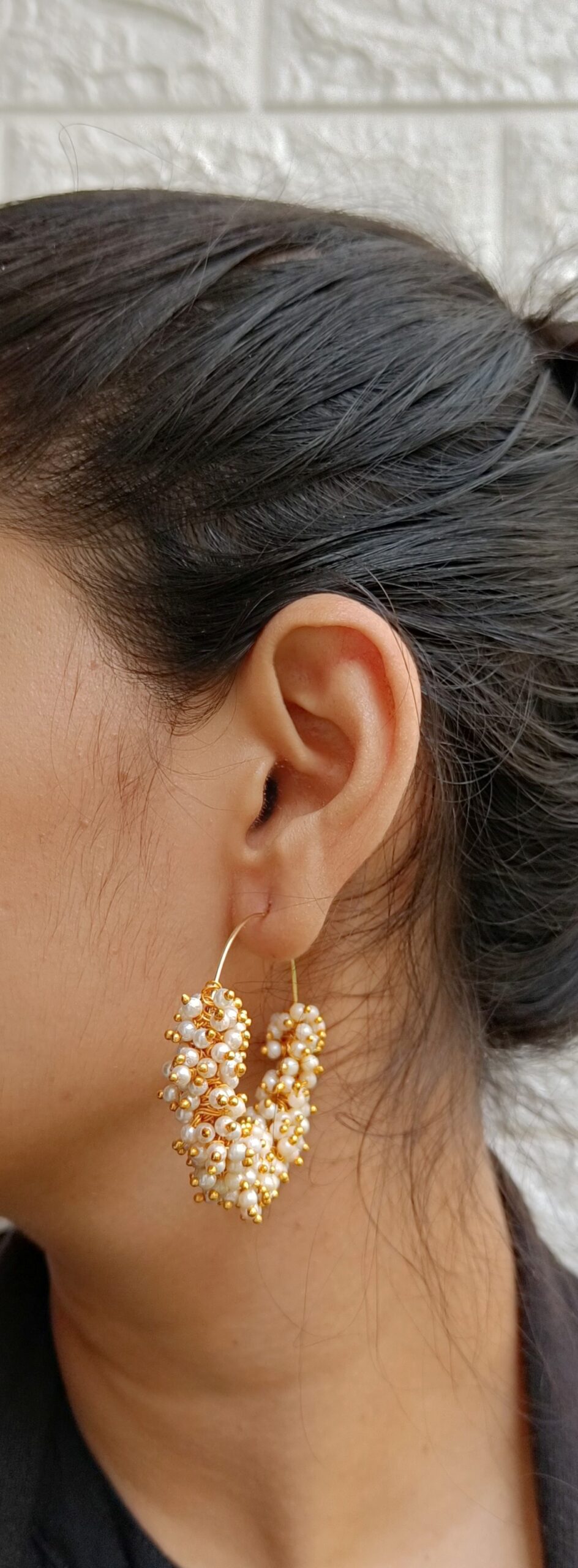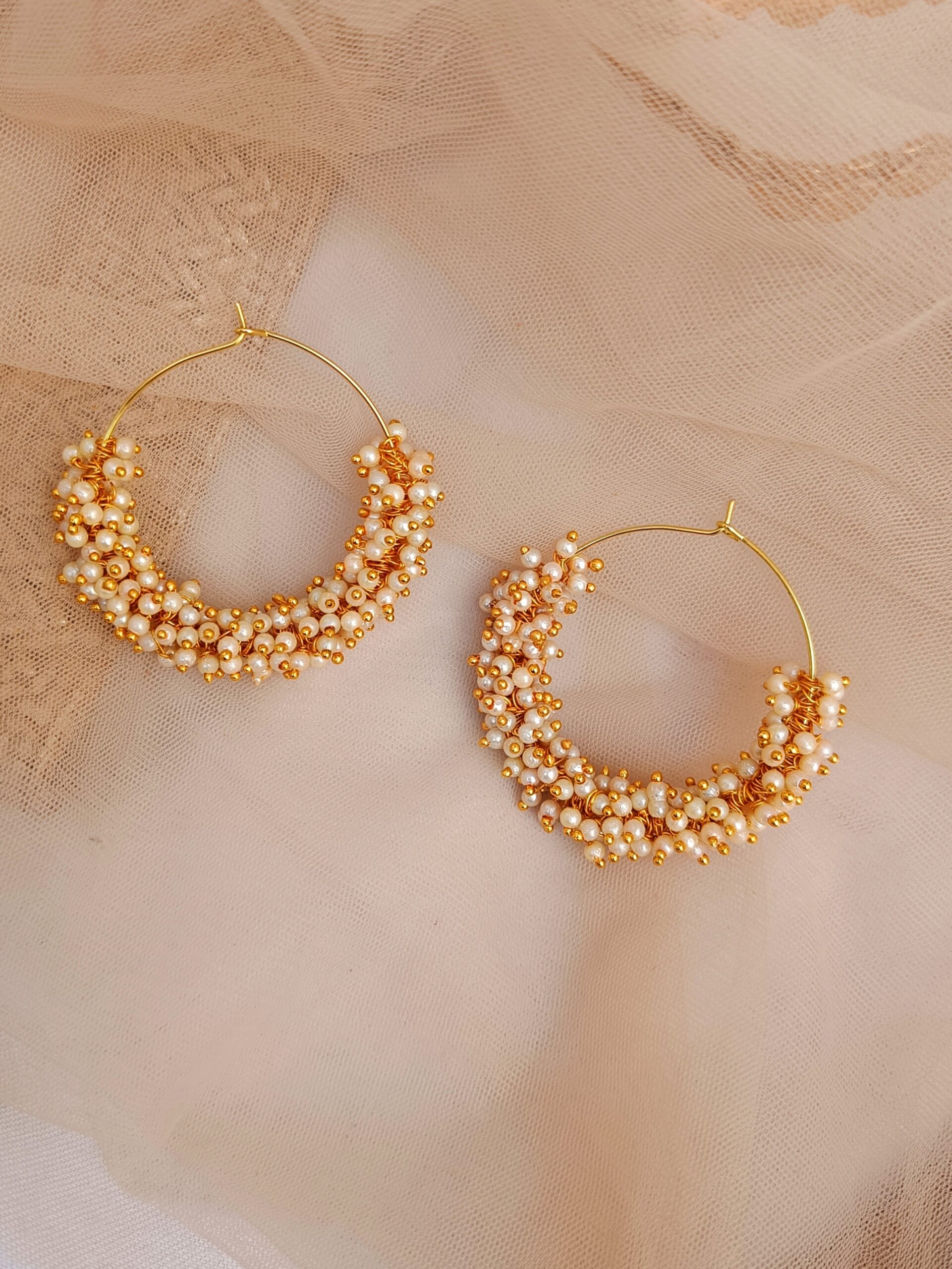 Flaunt your feminine charm with Gold Plated Beaded Handcrafted Hoops Earrings. Bring your style to a whole new level with this handcrafted piece of jewellery.
