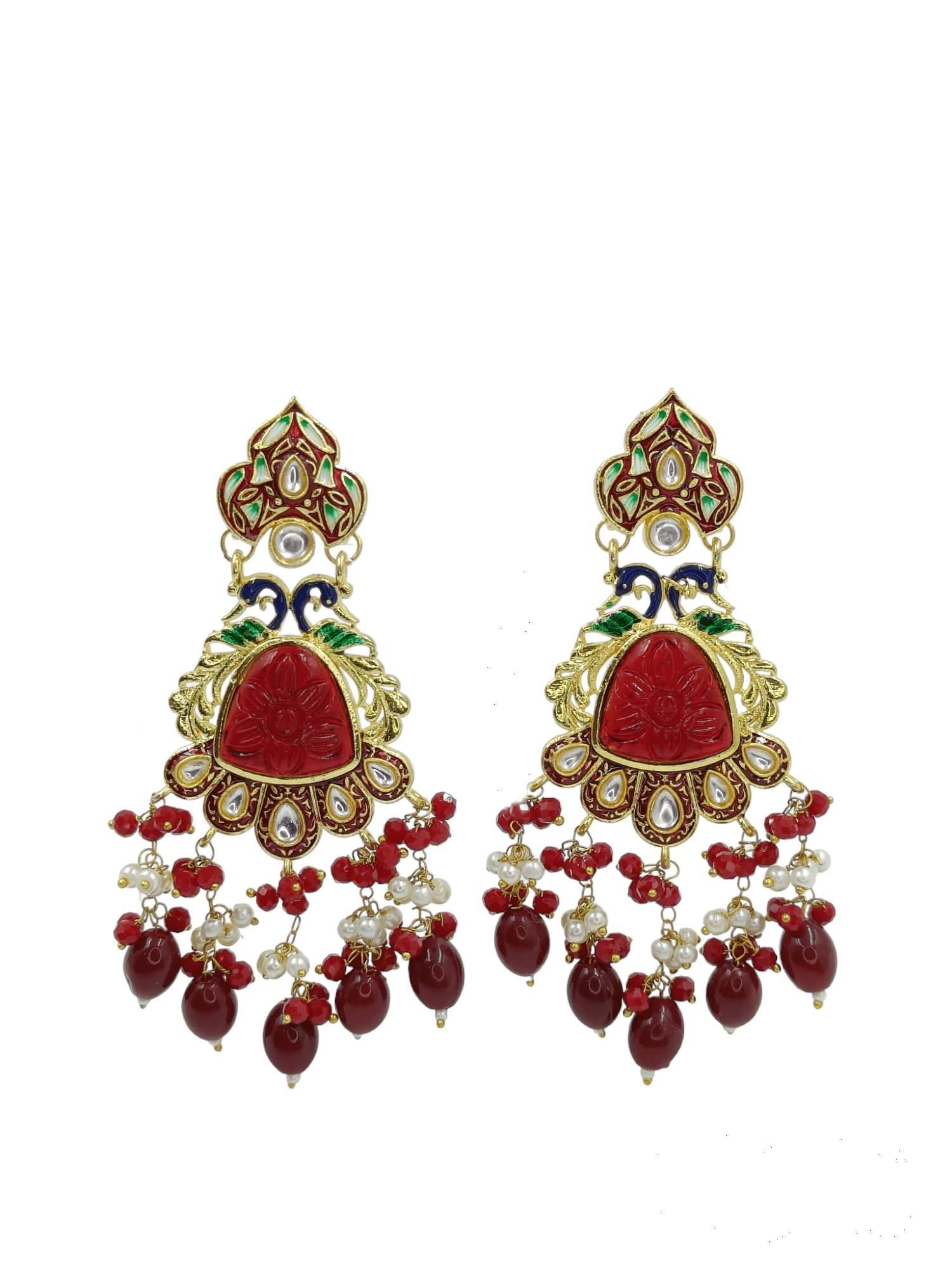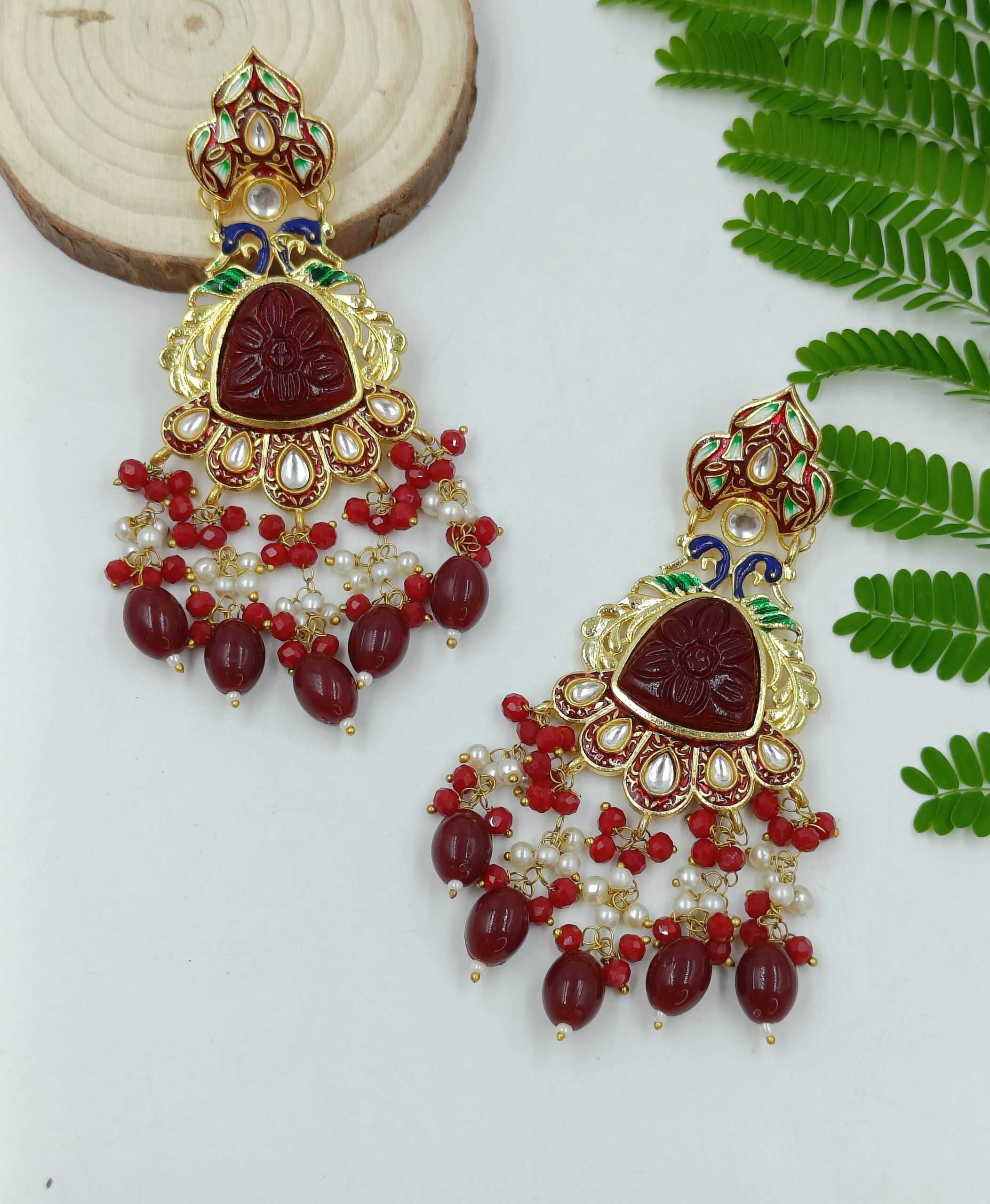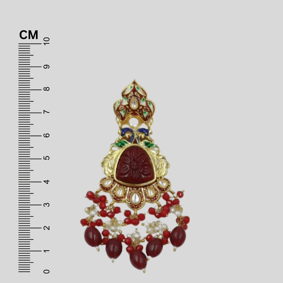 Flaunt your feminine charm with FHF Beaded Traditional Earring. This exquisite piece showcases a harmonious blend of studded Red Stone and unique design with peacock, adding a touch of elegance to your ensemble. Wear one of these and you don?t have to worry about any other accessory.