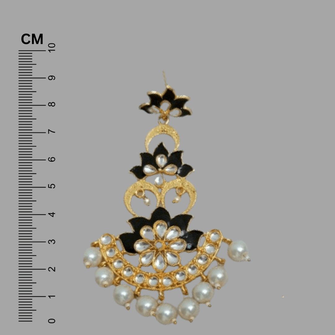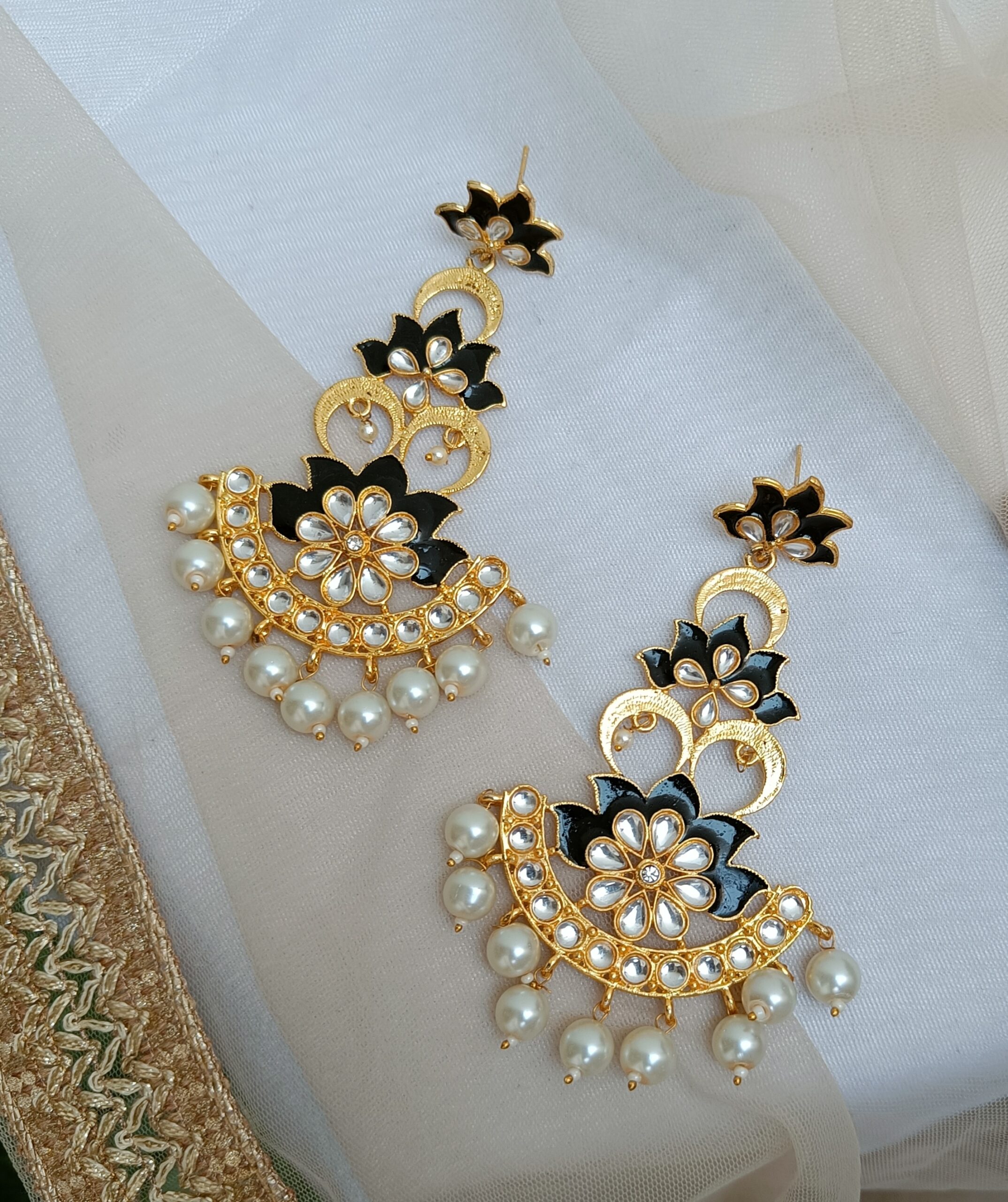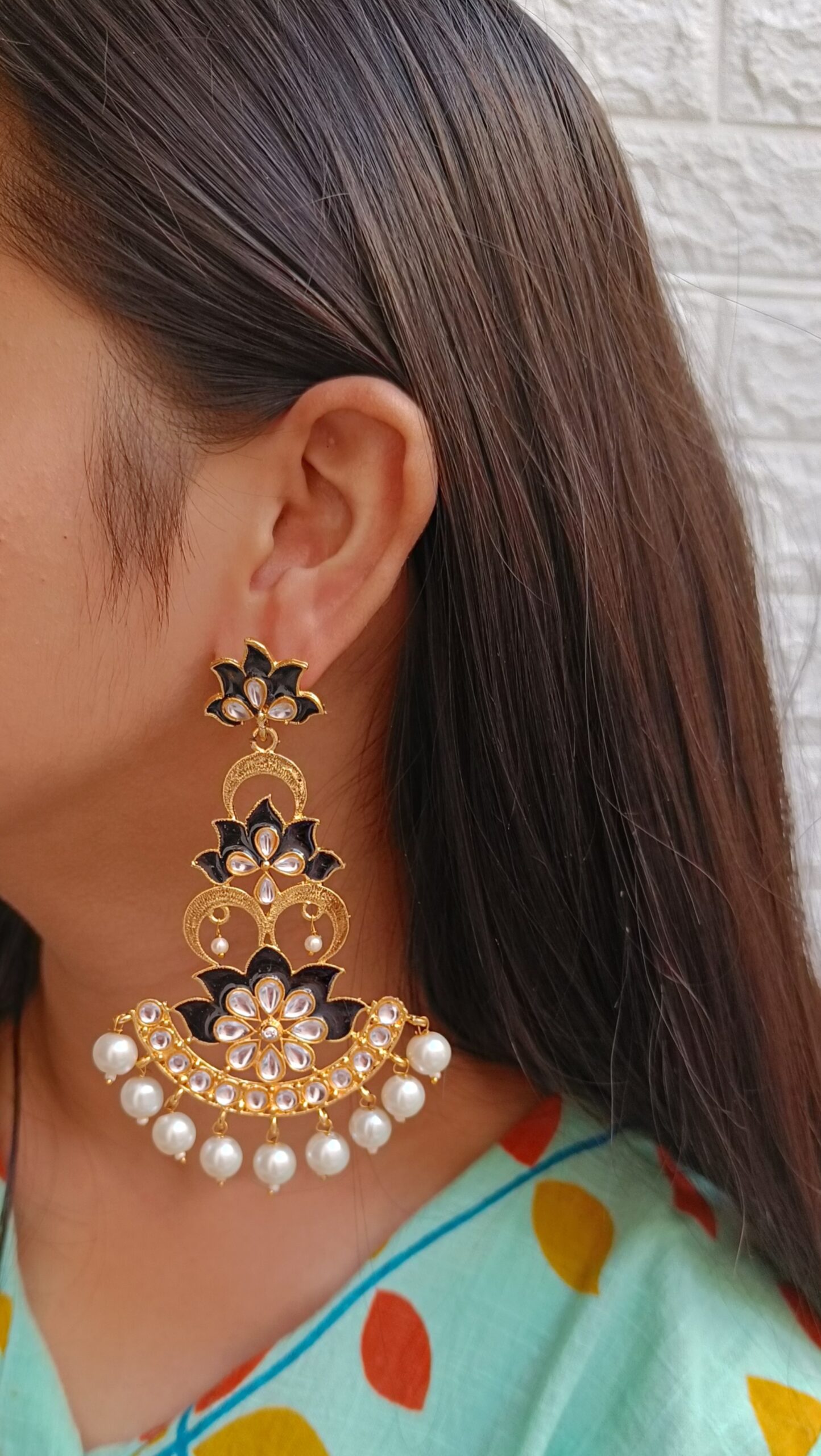 Flaunt your feminine charm with Gold Plated Black Lotus Layered Chandbali Earrings. Bring your style to a whole new level with this handcrafted piece of jewellery.