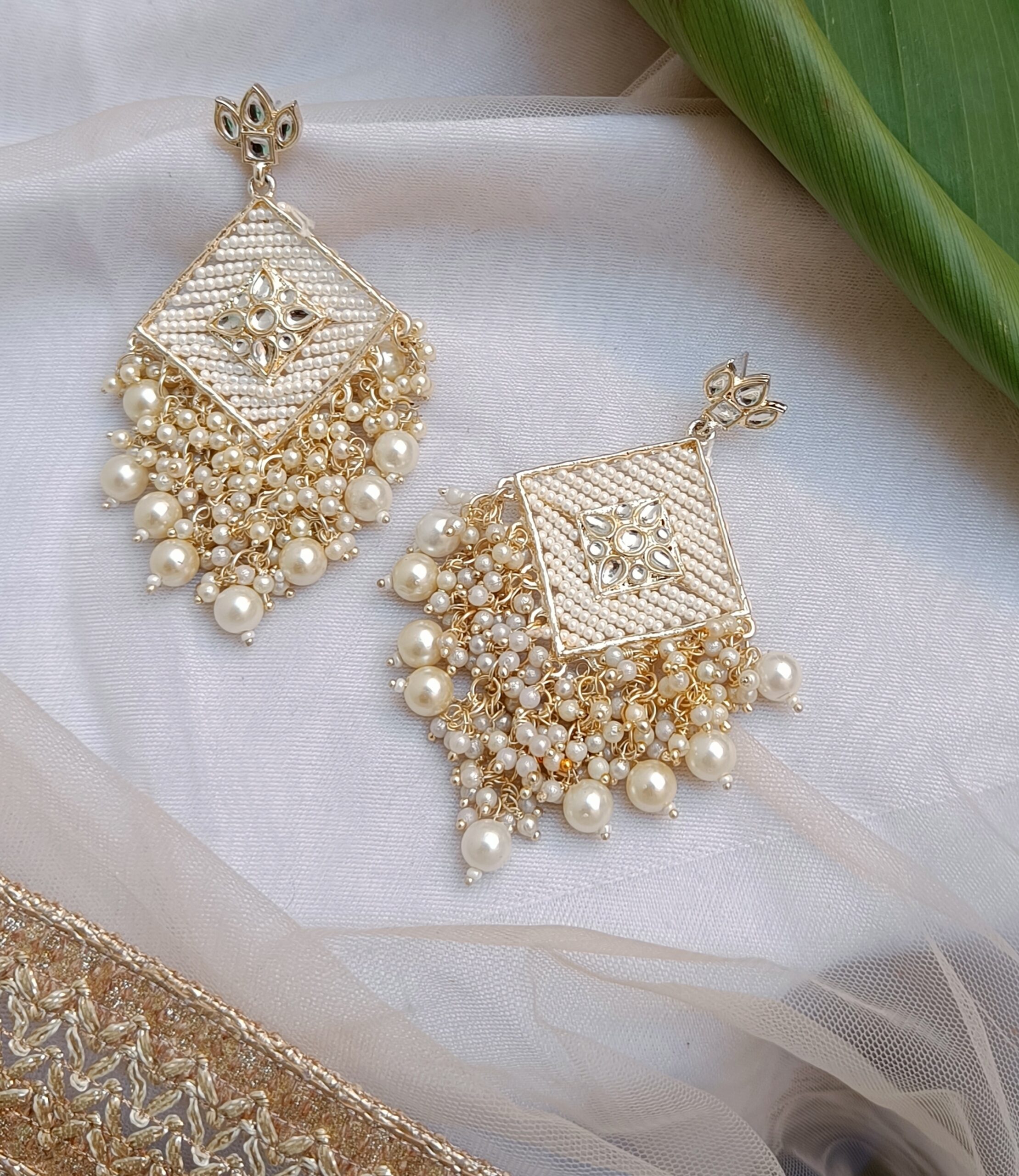 Flaunt your feminine charm with Gold Plated Hand-Crafted Bedded Traditional Earrings. Bring your style to a whole new level with this handcrafted piece of jewellery.