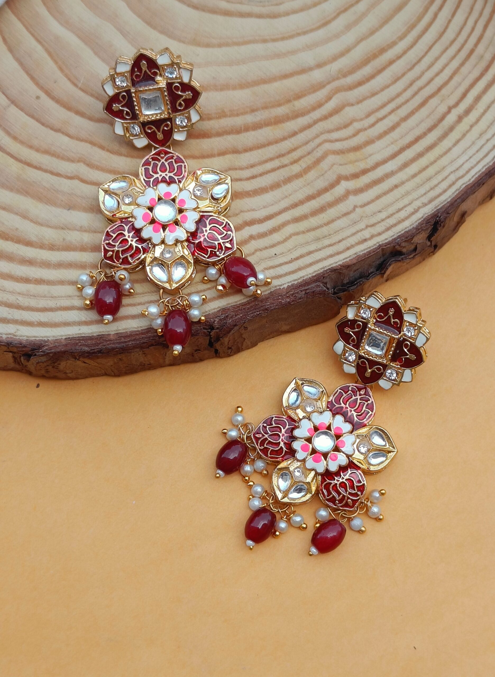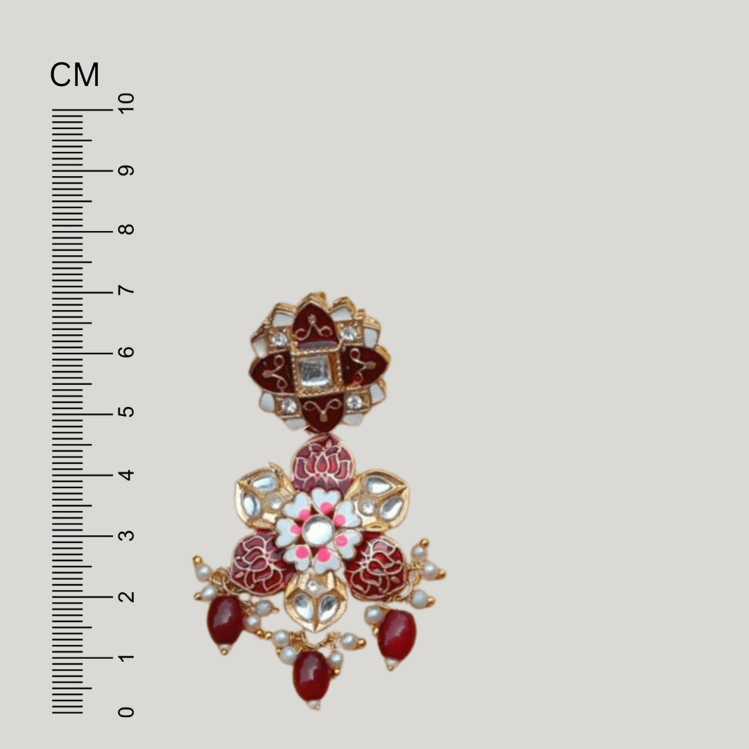 Enhance your style with these exquisite Gold Plated Hand Painted Red Flower Layered Earrings. Wear one of these and you don?t have to worry about any other accessory.