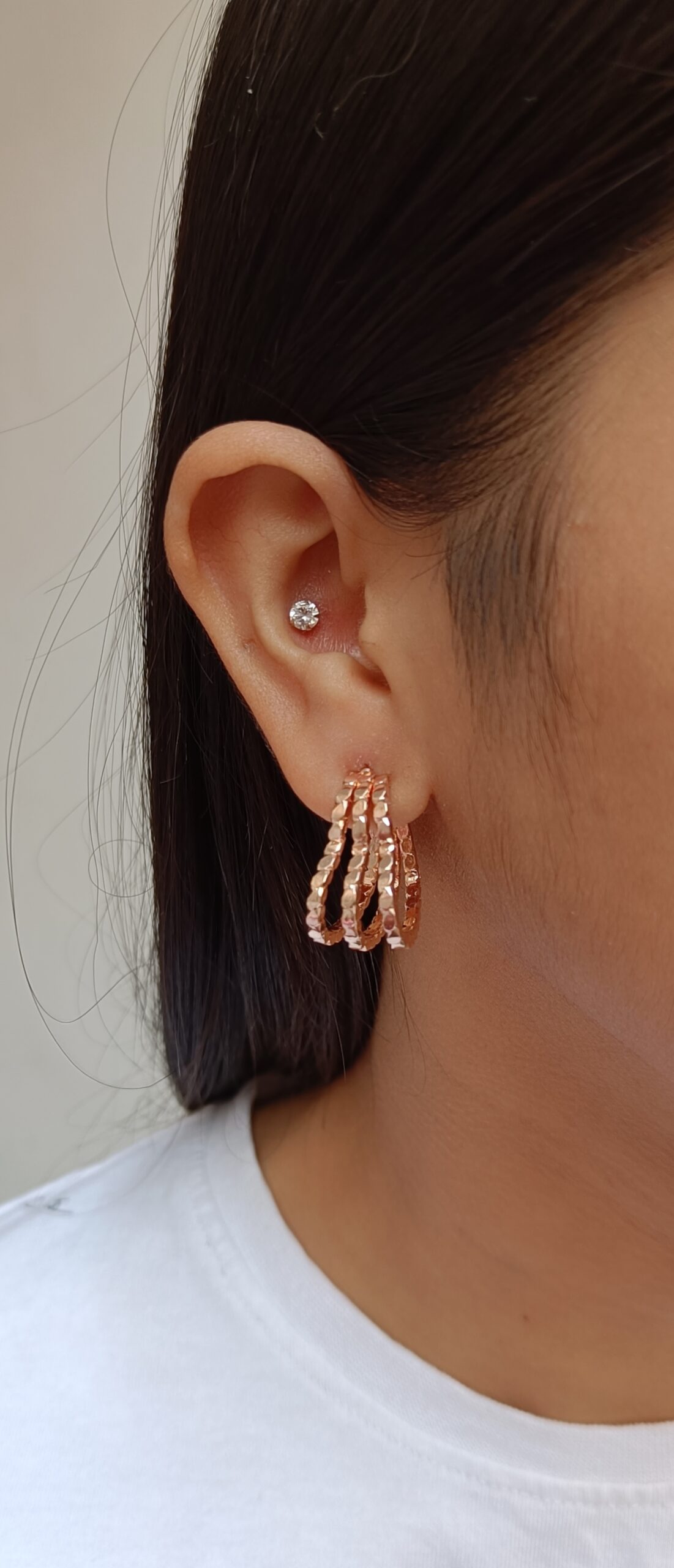 Flaunt your feminine charm with FHF Gold Plated Layered Heart Hoops Earrings. Bring your style to a whole new level with this handcrafted piece of jewellery.