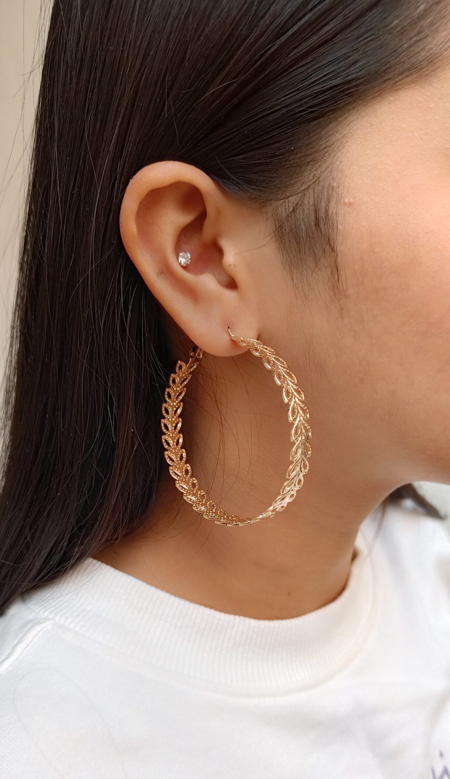 Flaunt your feminine charm with FHF Gold Plated Leaf Shaped Big Hoop Earring. Bring your style to a whole new level with this handcrafted piece of jewellery.
