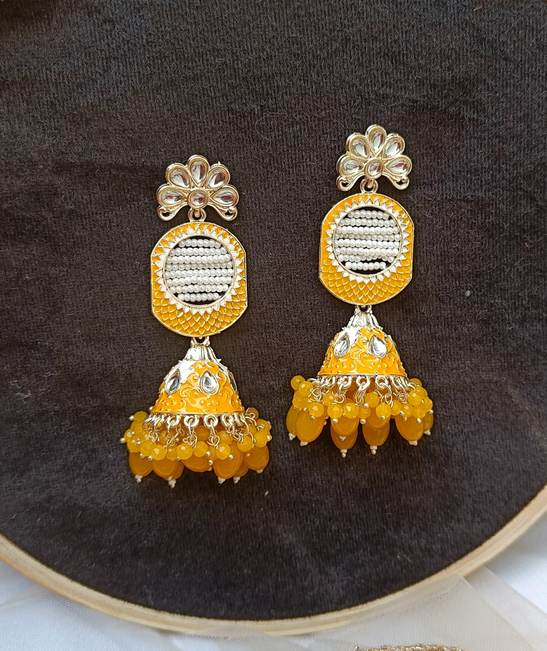 Looking for Desi vibe then this Meenakari Beaded Jhumka Earrings is designed exclusively for you.