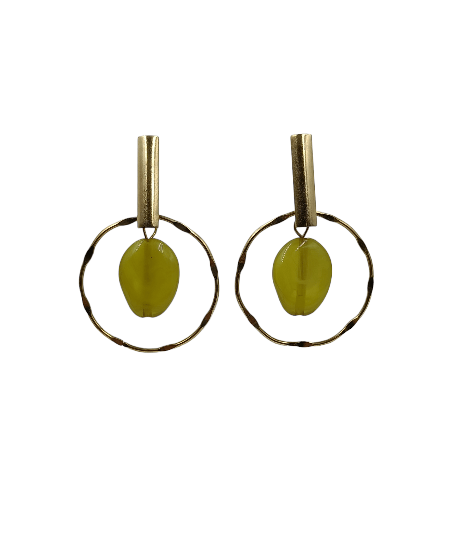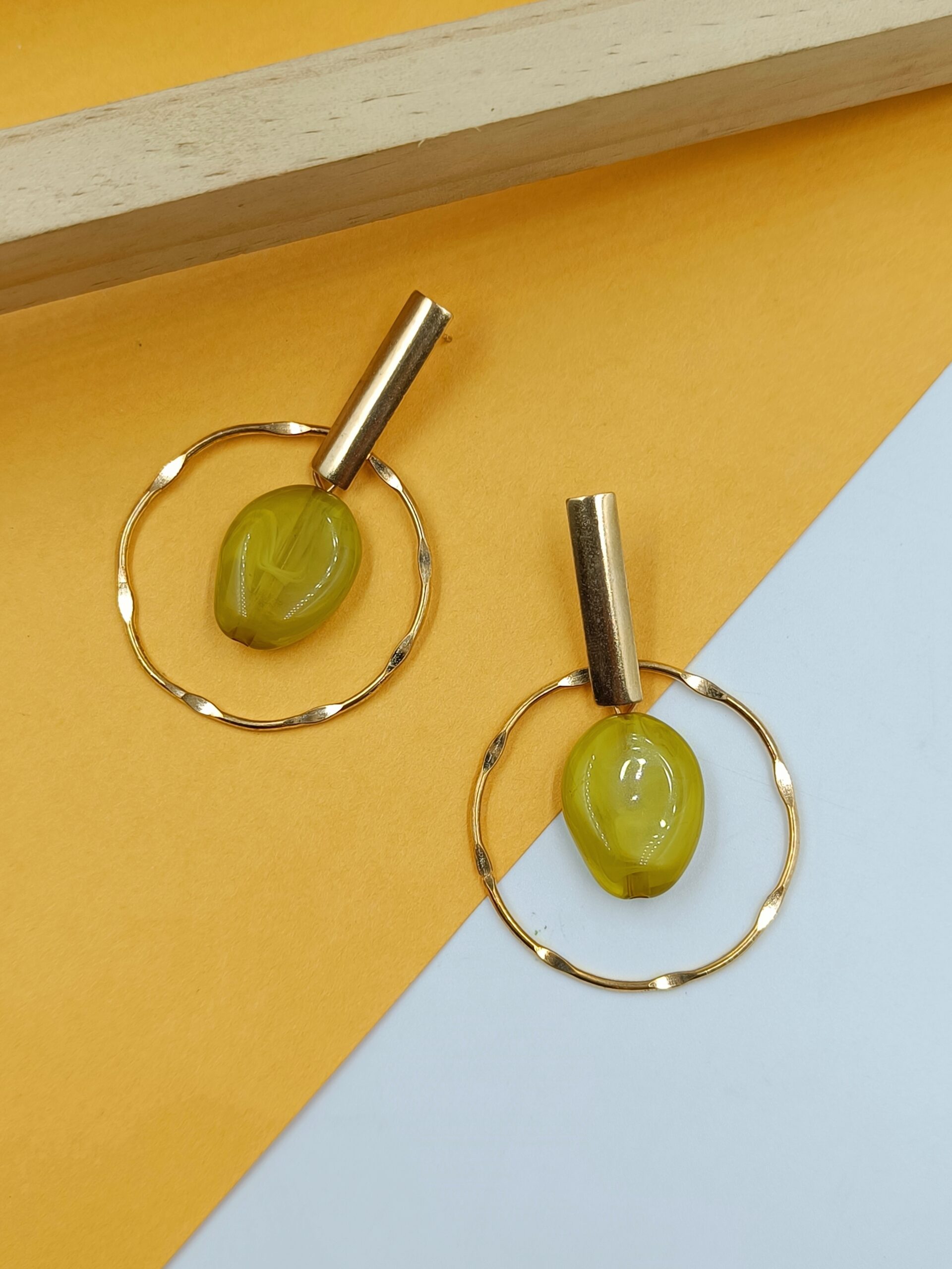 Enhance your style with these exquisite Gold Plated Natural Stone in Circle Dangler Earrings. Elevate your look with these elegant and captivating statement pieces.