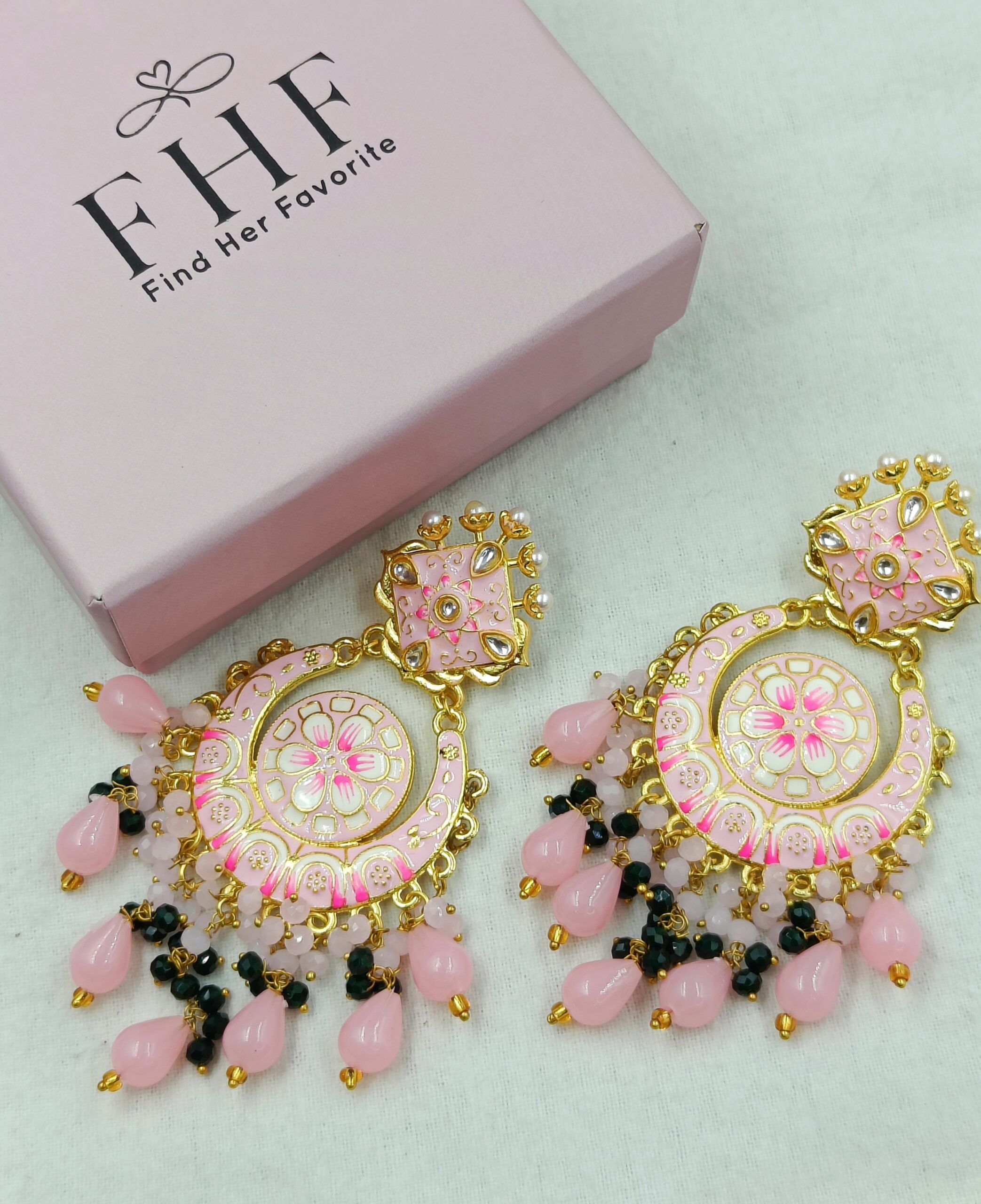 Flaunt your feminine charm with FHF Gold Plated Pink Meenakari Beaded Traditional Earrings . Wear one of these and you don?t have to worry about any other accessory.