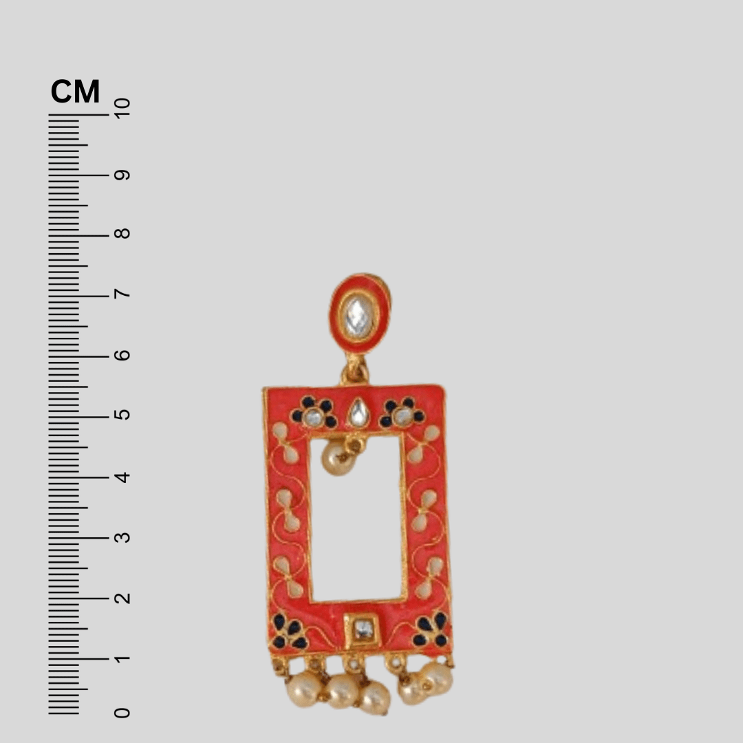 Flaunt your feminine charm with Gold Plated Rectangular Shape Meenakari Earrings. Bring your style to a whole new level with this handcrafted piece of jewellery.