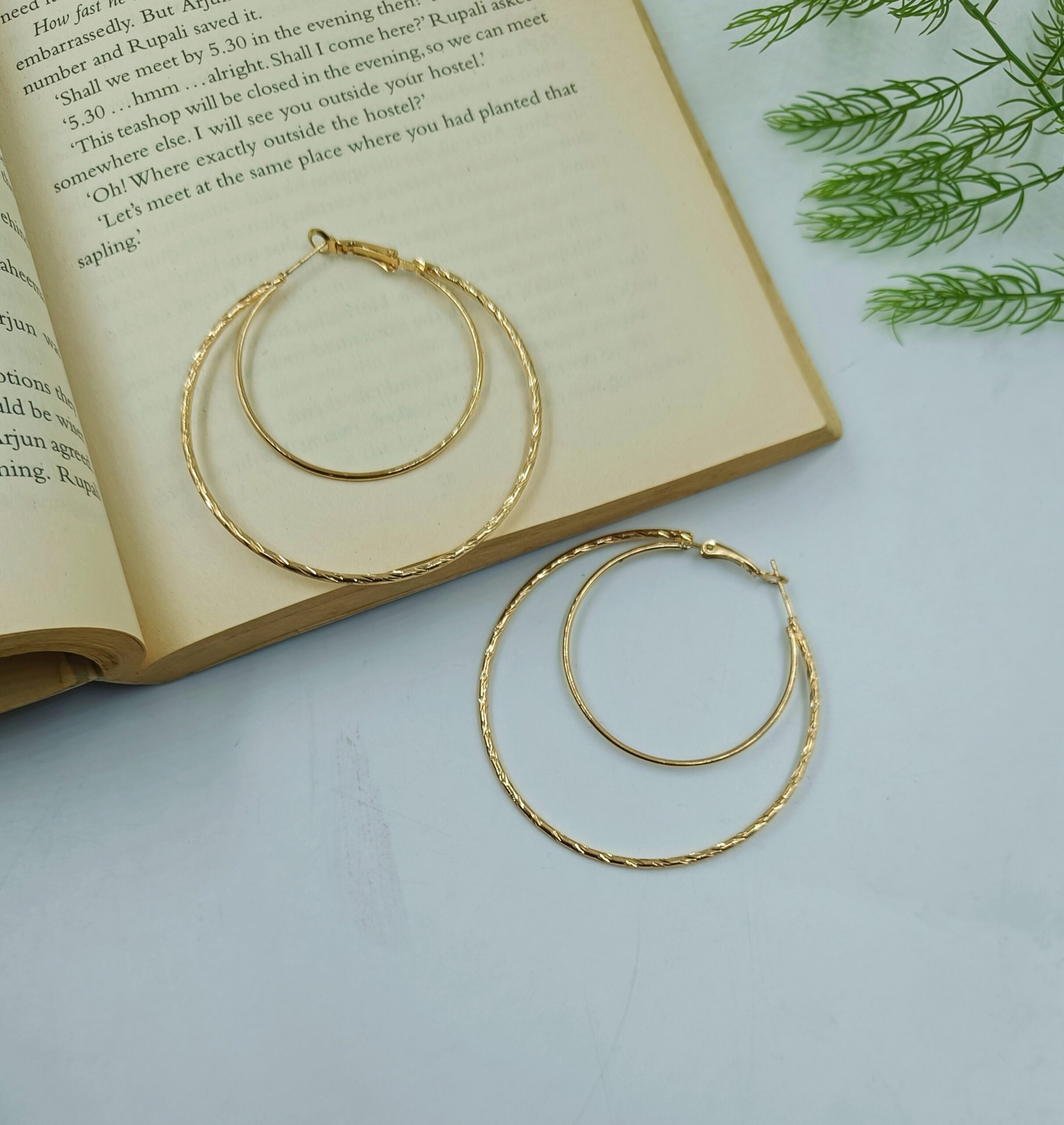 Flaunt your feminine charm with Gold Plated Two Layard Big Hoops Earrings . Bring your style to a whole new level with this amazing piece of jewellery.