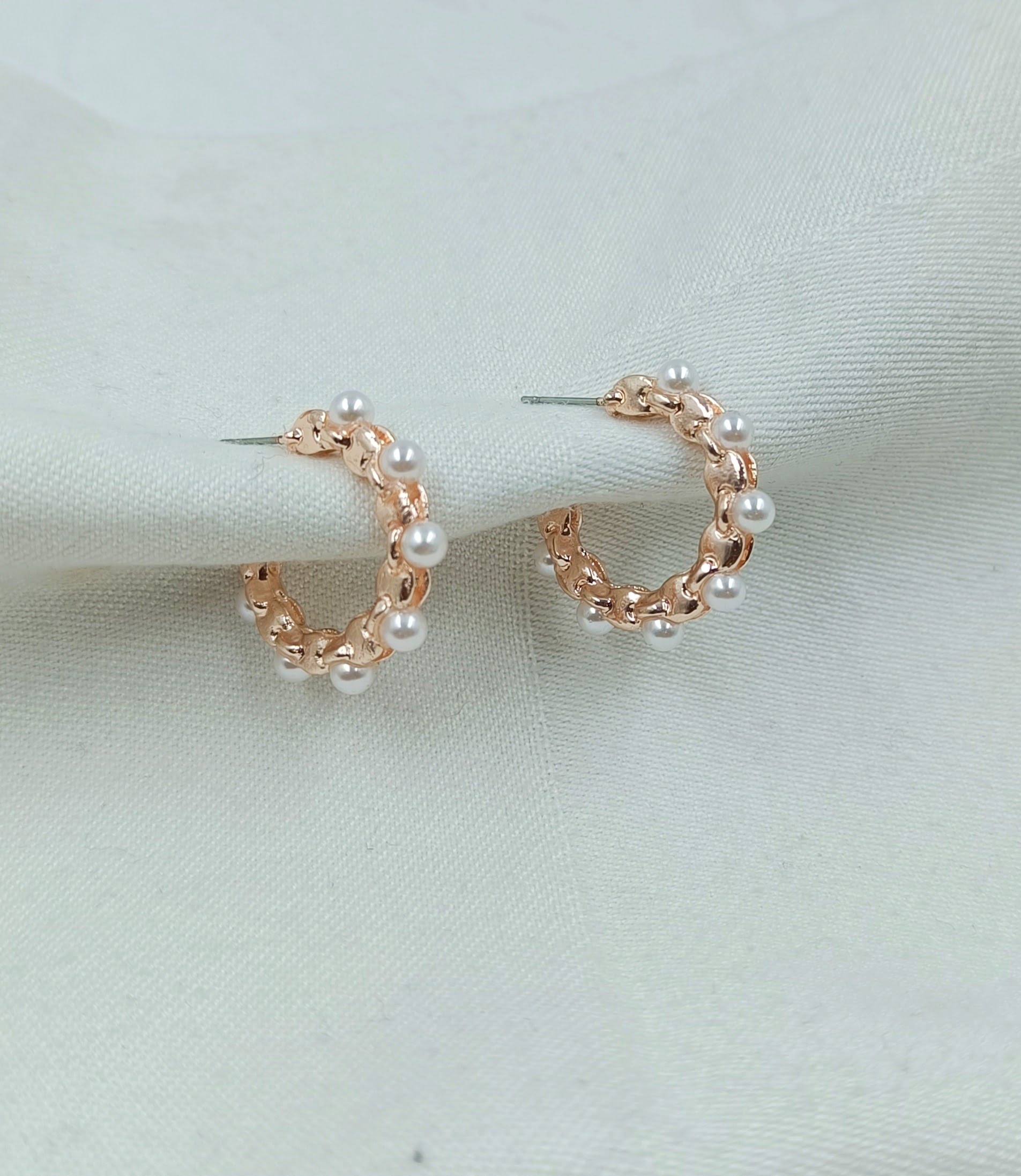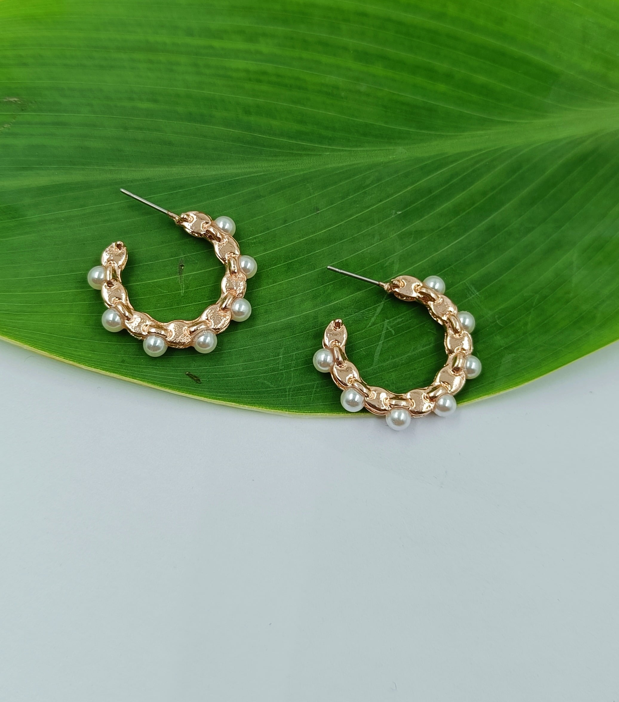 Flaunt your feminine charm with FHF Rose Gold Plated pearl Hoops Earrings. Bring your style to a whole new level with this amazing piece of jewellery.