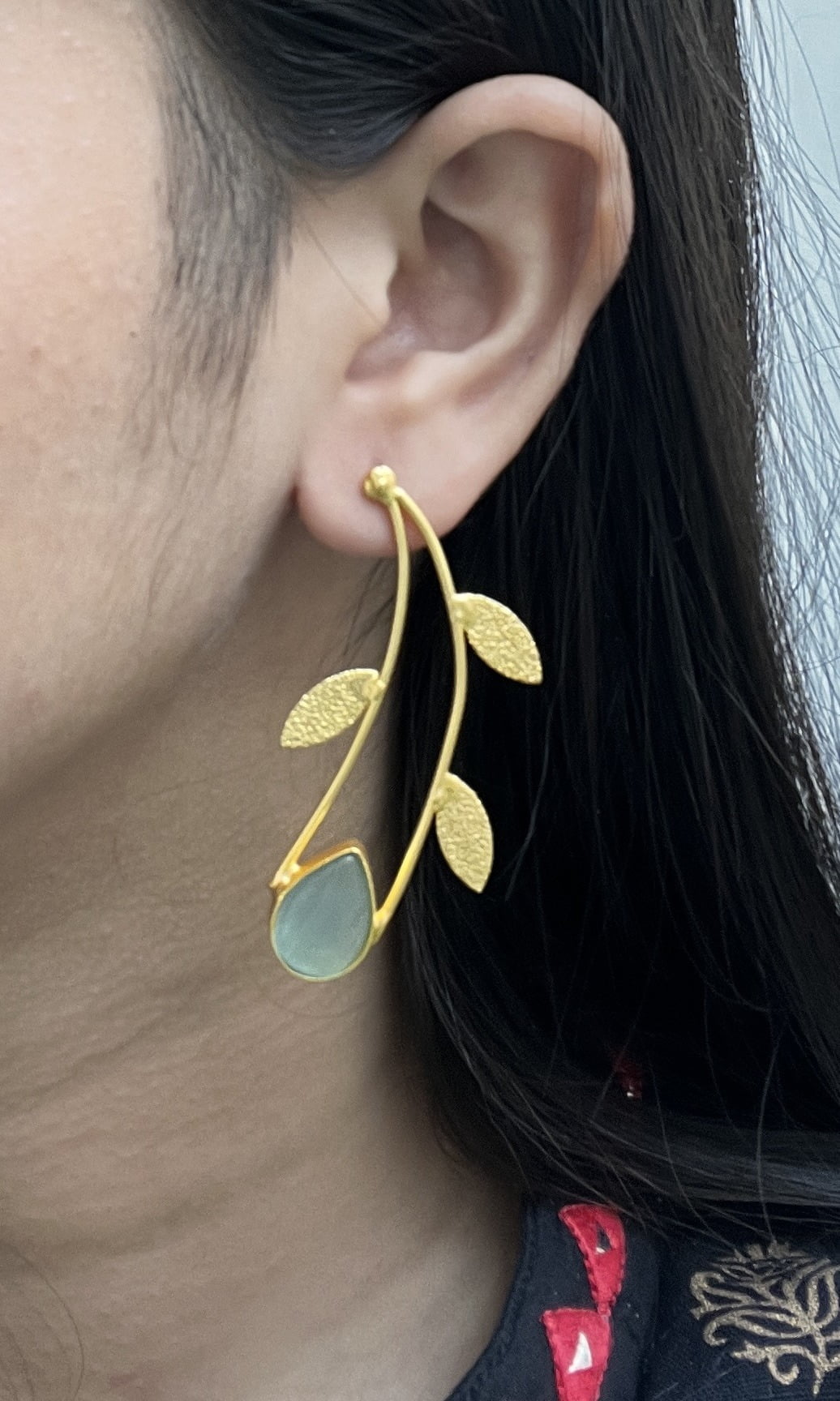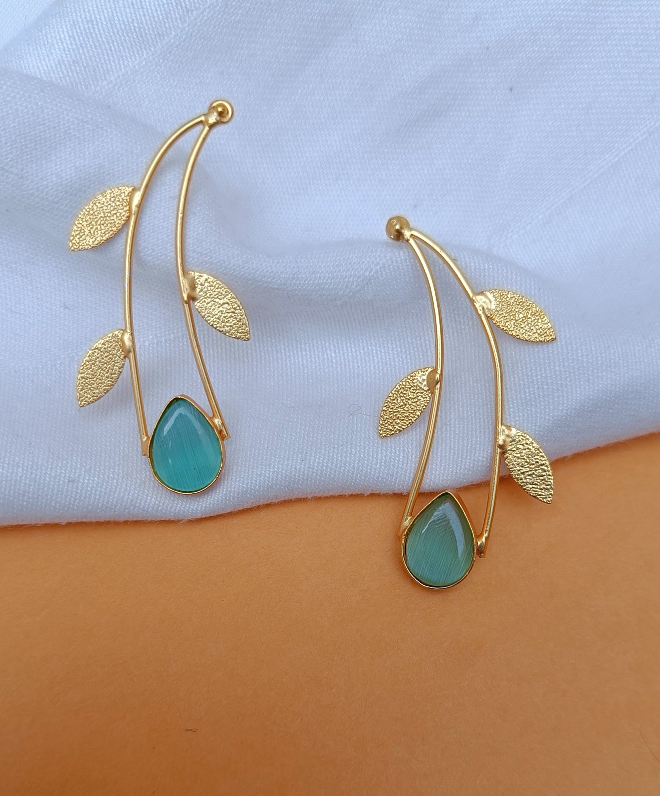Enhance your style with these exquisite sea green stone C shaped dangler. Elevate your look with these elegant and captivating statement pieces.
