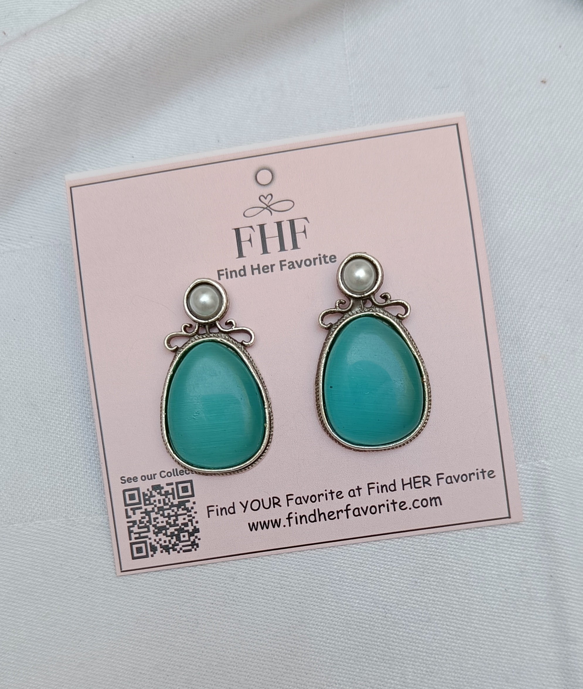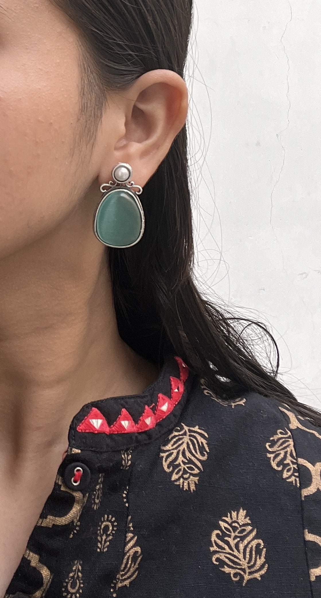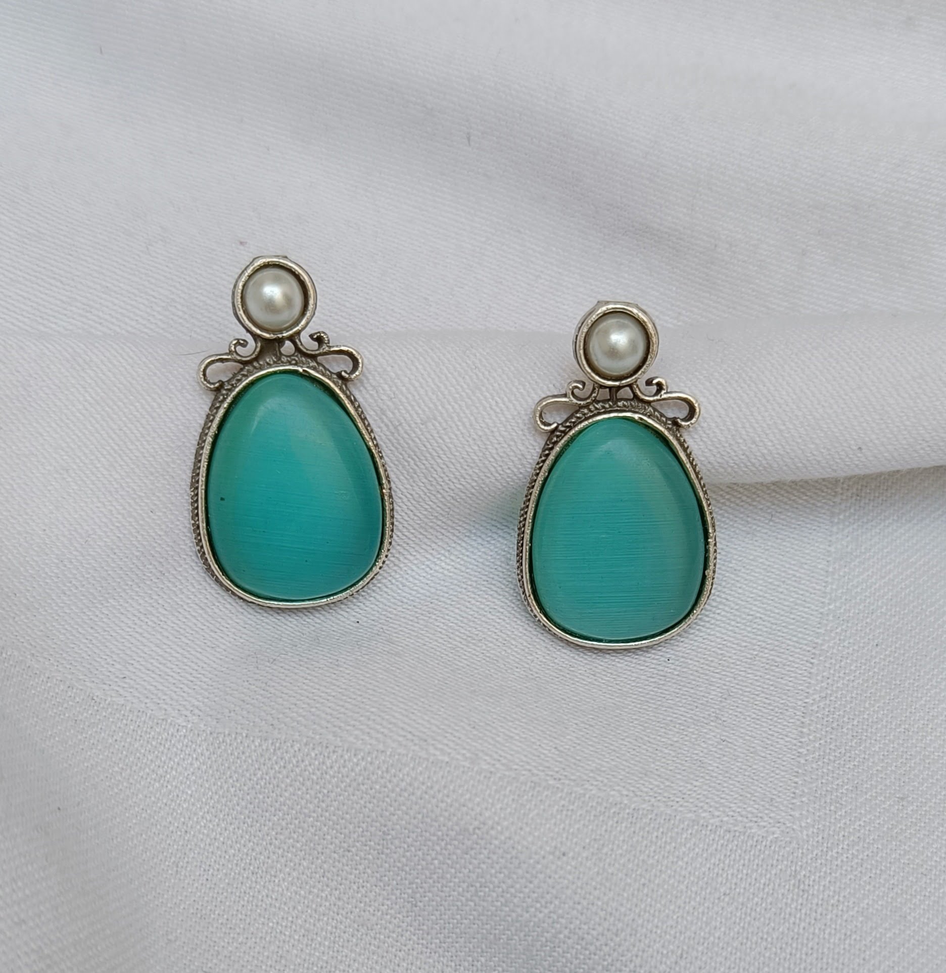 Enhance your style with these exquisite sea green stone silver brass with pearl. Elevate your look with these elegant and captivating statement pieces.