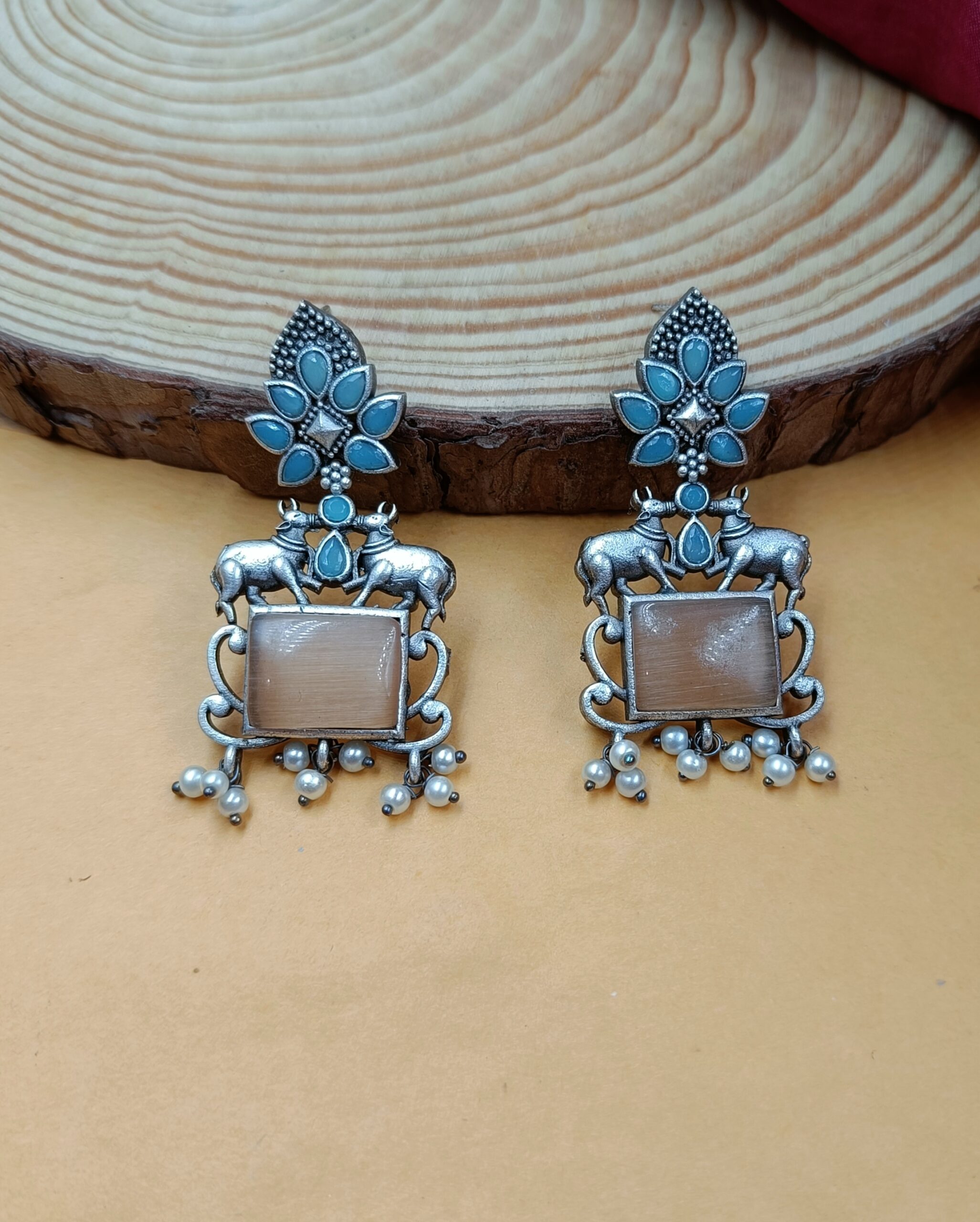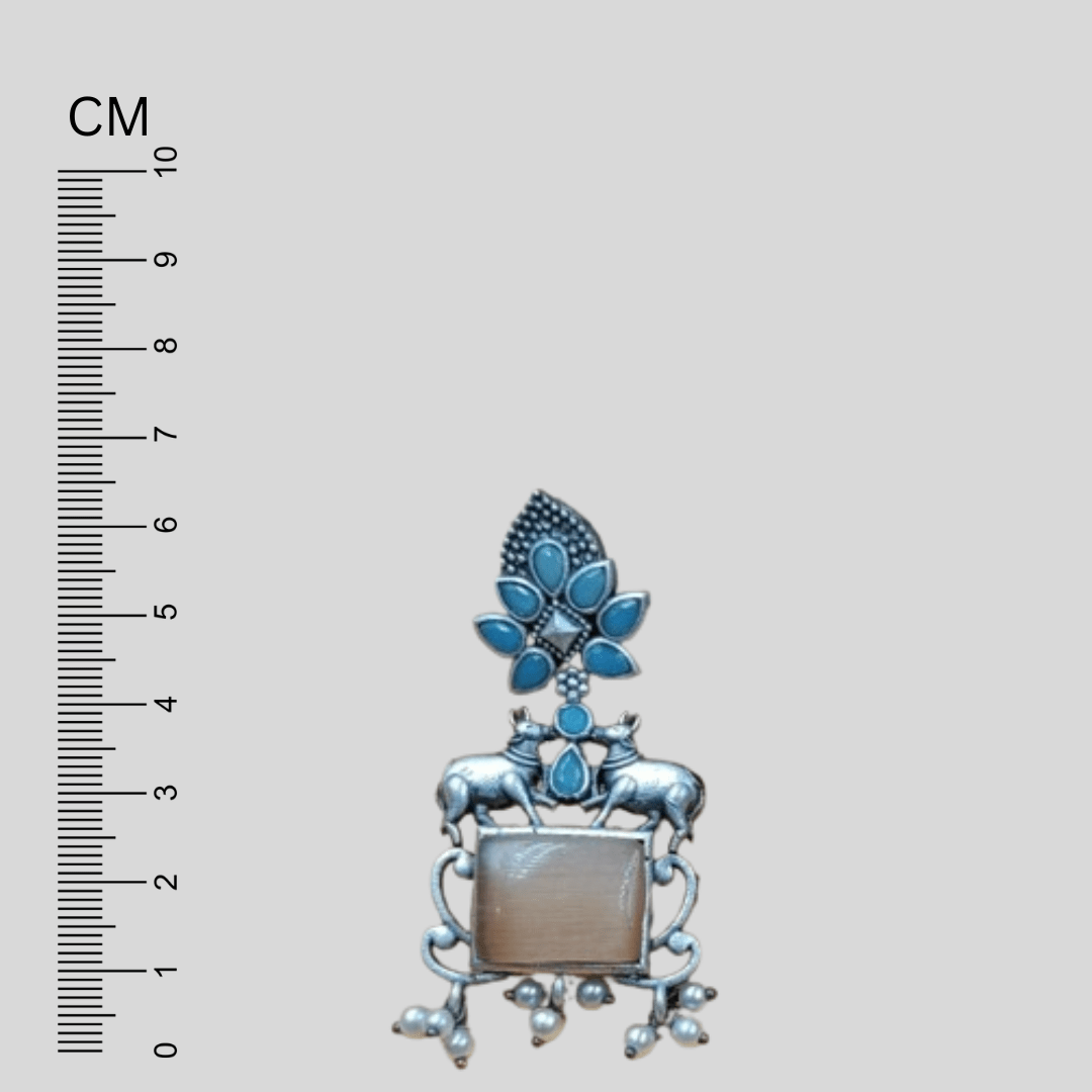 Enhance your style with these exquisite Silver Plated Nandi Designer Earrings. Elevate your look with these elegant and captivating statement pieces.