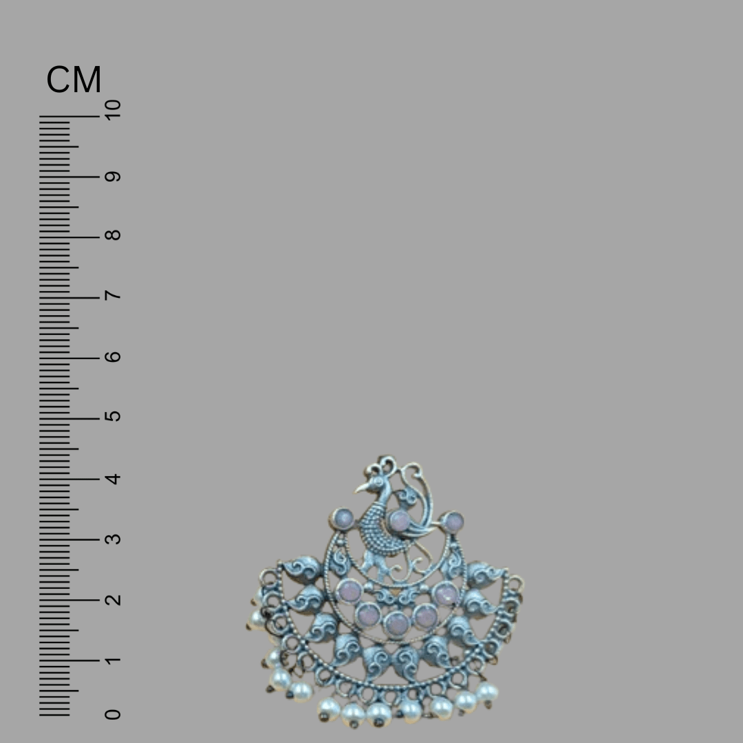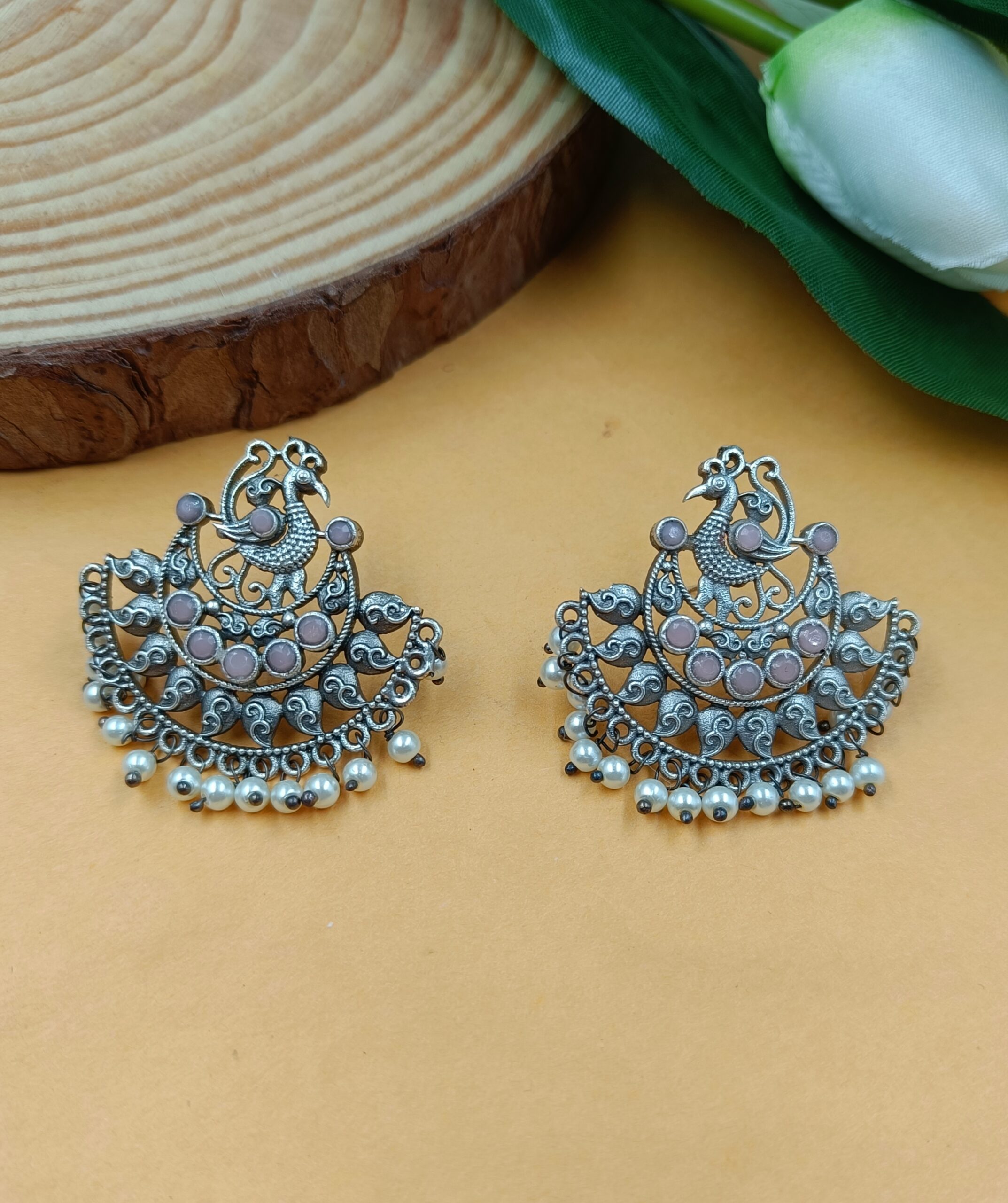 Enhance your style with these exquisite Silver Plated Peacock Pink Stone Earringss. Elevate your look with these elegant and captivating statement pieces.