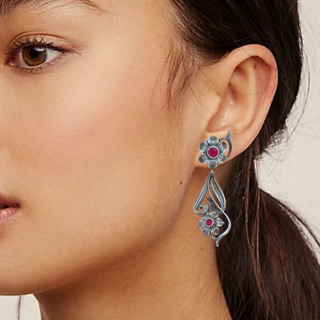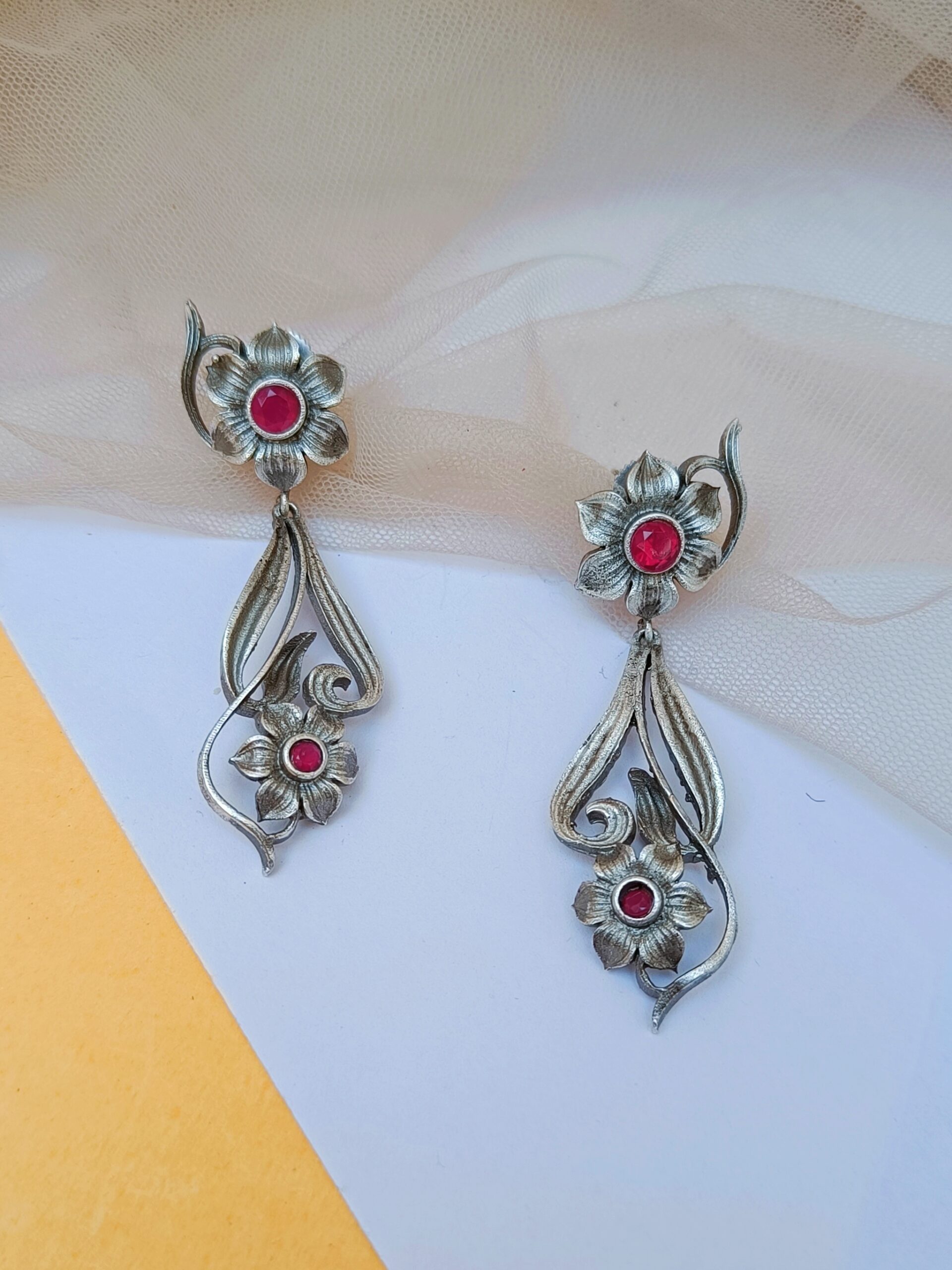 Enhance your style with these exquisite Silver Plated Black Stone Designer Flower Earrings . Elevate your look with these elegant and captivating statement pieces.