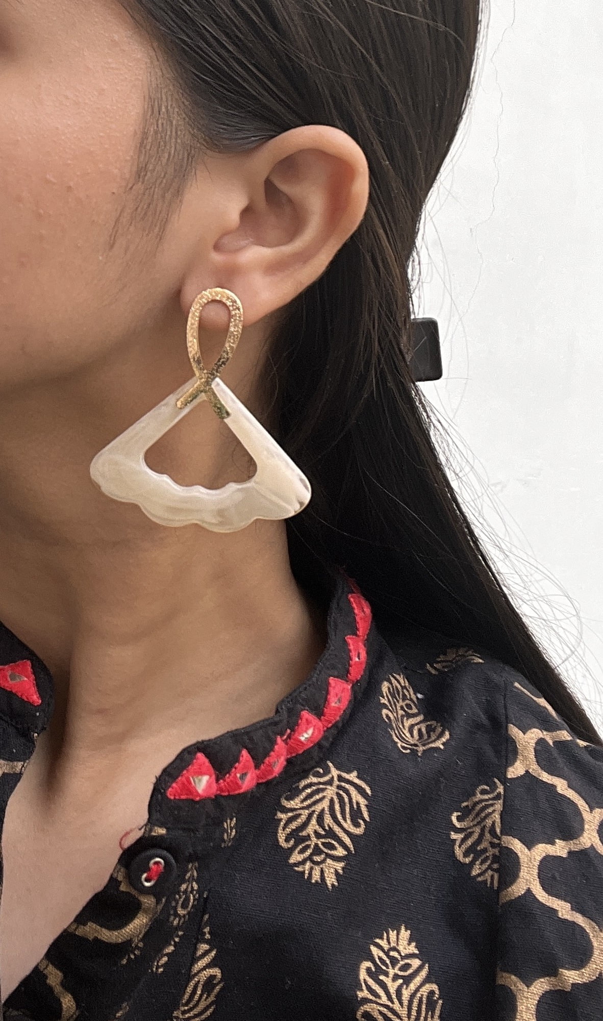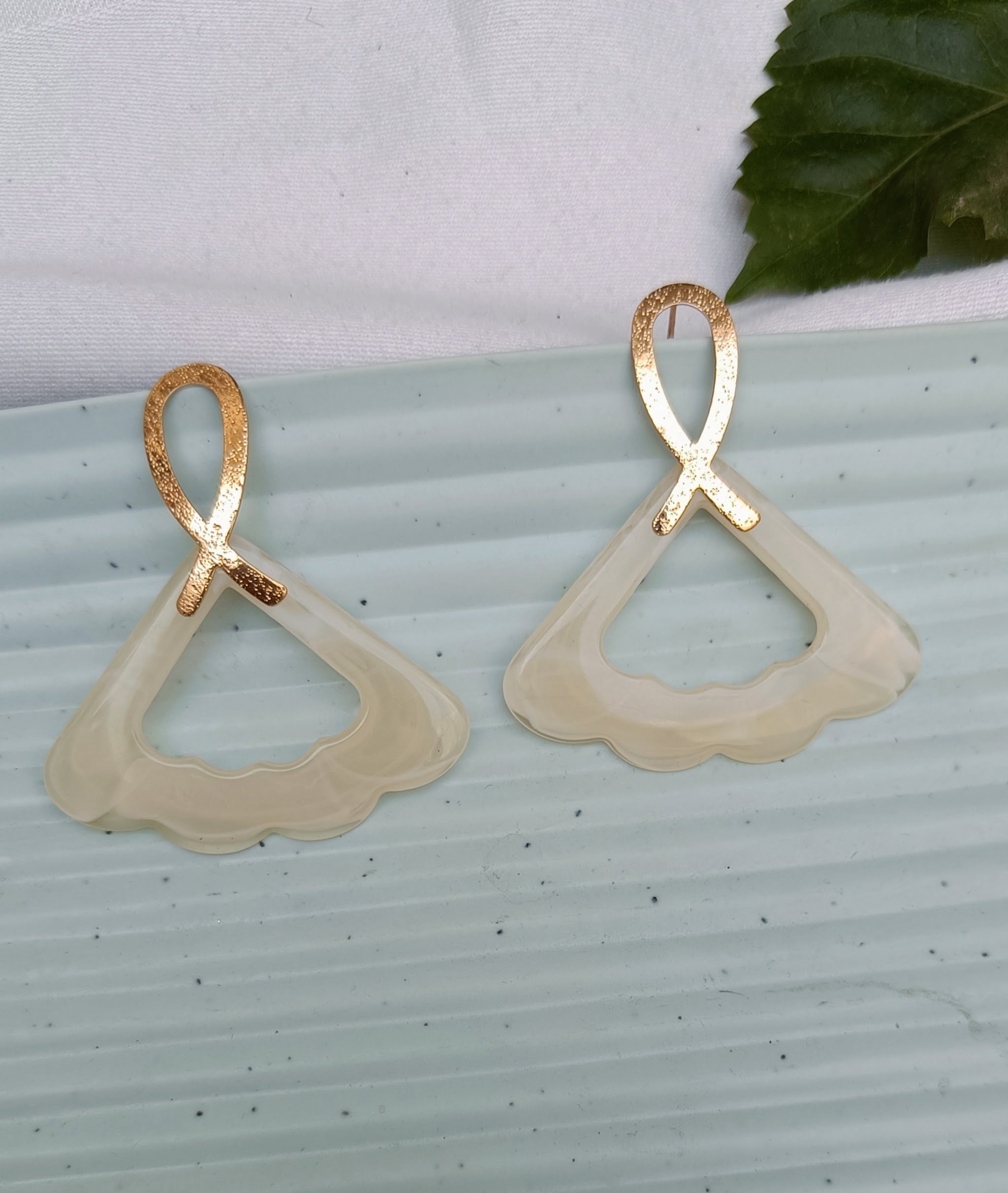 Enhance your style with these exquisite yellow acrylic fan shaped dangler. Elevate your look with these elegant and captivating statement pieces.